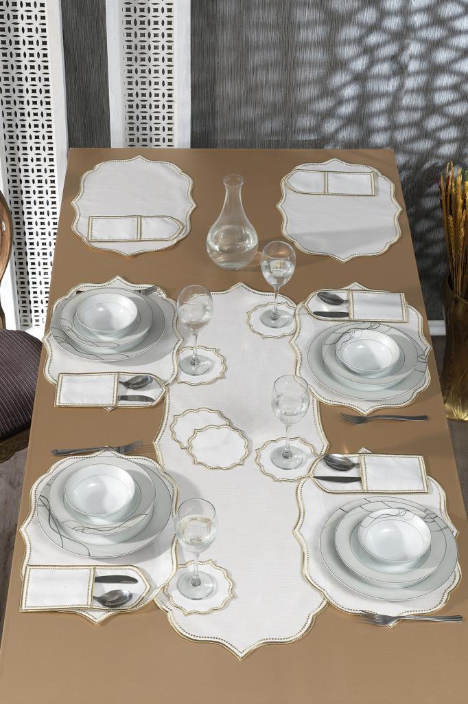 Damla Keten Nakışlı Amerikan Servis Takımı 19 Parça Gold