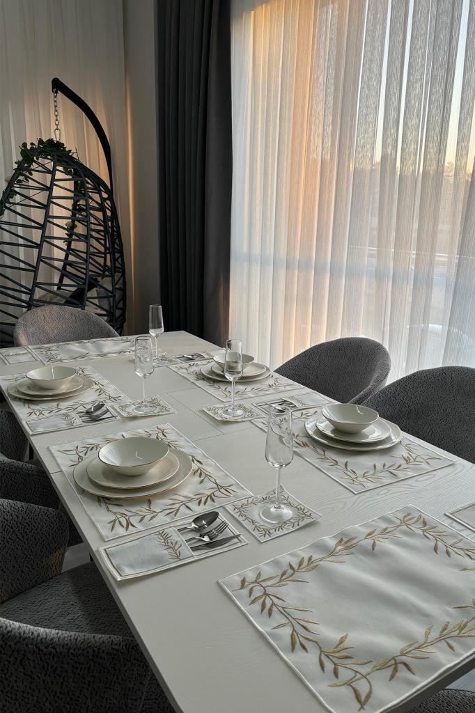 Nazlım Keten Nakışlı Amerikan Servis Takımı 19 Parça Gold