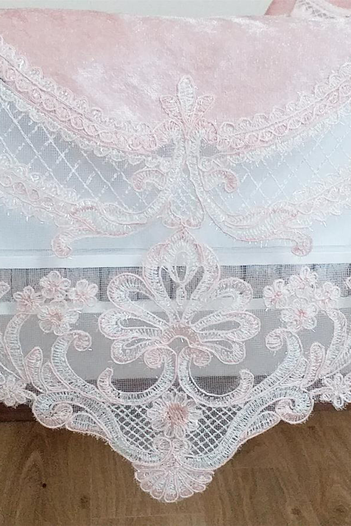 Fransız Güpürlü Orkide Kadife Salon Takımı 5 Parça Pudra