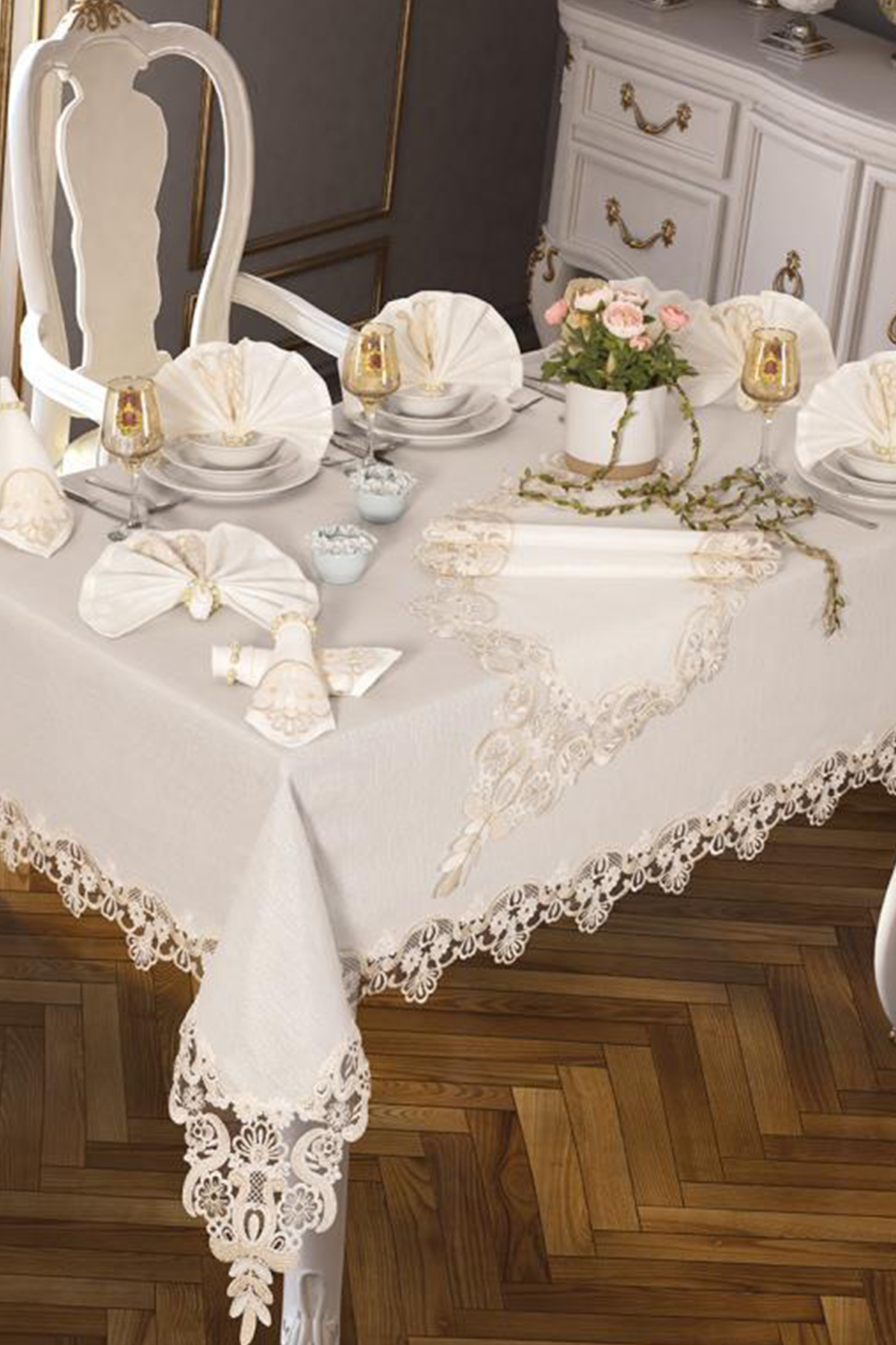 Neslihan Masa Örtüsü 160x260 Cm 26 Parça Krem