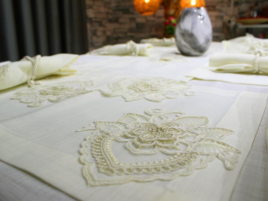 34 Parça Amerikan Servis Seti Marka: Çeyiz Diyarı Masa Örtüsü: 160x260 cm (1 Adet) Amerikan Servis: 45x50 cm (8 Adet) Peçete: 35x35 cm (12 Adet) Runner: 45x130 cm (1 Adet) Yüzük: 12 Adet Danteller Yerli Fransız Dantelidir. El İşçiliğiyle Birlikte Keten Kumaştan İmal Edilmiştir. Ürünü Beğenmeme Durumunda Koşulsuz İade Hakkına Sahipsiniz. YIKAMA TALİMATI -Makinada veya elde yıkayabilirsiniz max 30 derecede yıkayınız. -Çamaşır suyu ile leke sökücü kimyasallar kullanmayınız. -Yıkama esnasında koyu renkleri mümkün olduğunca ayrı tutunuz. -Ilık ütü ile ütüleyiniz. -Islak bekletmeyiniz. -Kurutma makinasında kurutulabilir.