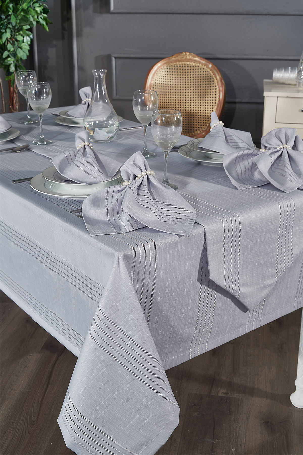 Corvver 26 Parça Dertsiz Masa Örtüsü Takımı Gri