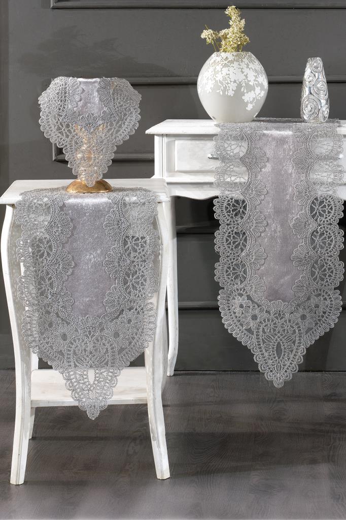 Fransız Güpürlü Lüks 5 parça Salon Takımı Marka: Çeyiz Diyarı Runner:130 x 37 cm / 1 adet Konsol : 45 x 27 cm / 2 adet Runner: 85x35 cm / 2 adet Kadife Kumaştan Üretilmiştir. Fransız Güpürü İle Şık Bir Tasarım Oluşturulmuştur. YIKAMA TALİMATI -Makinada veya elde yıkayabilirsiniz max 40 derecede yıkayınız. -Çamaşır suyu ile leke sökücü kimyasallar kullanmayınız. -Yıkama esnasında koyu renkleri mümkün olduğunca ayrı tutunuz. -Ilık ütü ile ütüleyiniz. -Islak bekletmeyiniz. -Kurutma makinasında kurutulabilir.