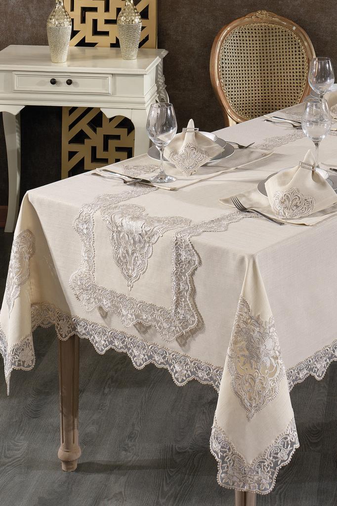 Katre Fransız Dantelli Keten Yemek Takımı - 26 Parça Cappucino