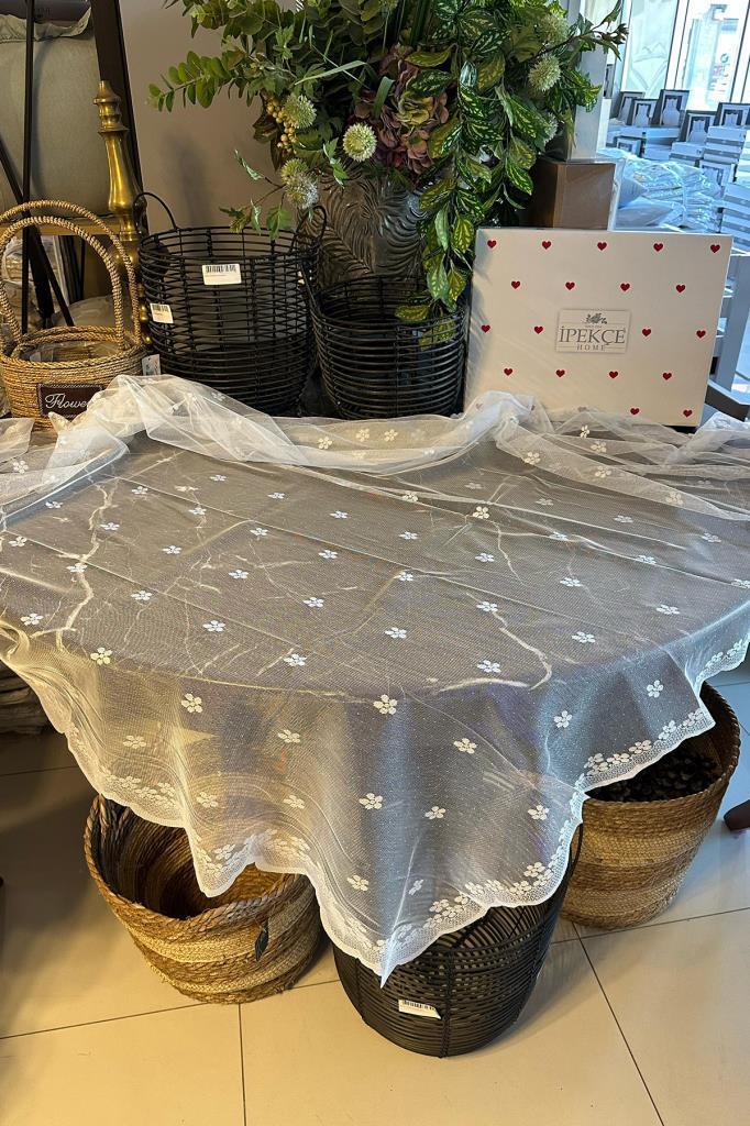 Fiskos Masa Örtüsü Marka : Çeyiz Diyarı Ebat: 150x150 Cm Çiçek Motifleri Nakış işlemesi ile şık bir tasarım oluşturulmuştur. Leke ve Kir Tutmaz Dertsiz Kumaştan Üretilmiştir. YIKAMA TALİMATI -Makinada veya elde yıkayabilirsiniz max 40 derecede yıkayınız. -Çamaşır suyu ile leke sökücü kimyasallar kullanmayınız. -Yıkama esnasında koyu renkleri mümkün olduğunca ayrı tutunuz. -Ilık ütü ile ütüleyiniz. -Islak bekletmeyiniz. -Kurutma makinasında kurutulabilir.