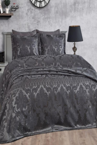 Dantela Armada Jakarlı Şönil Çift Kişilik Yatak Örtüsü Antrasit