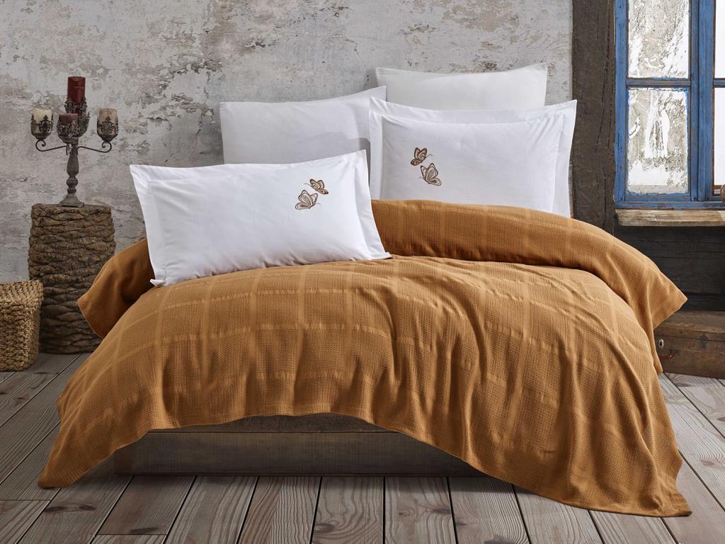 Çeyizdiyarı Rainbow Nakışlı Dokuma Pike Takımı Hardal