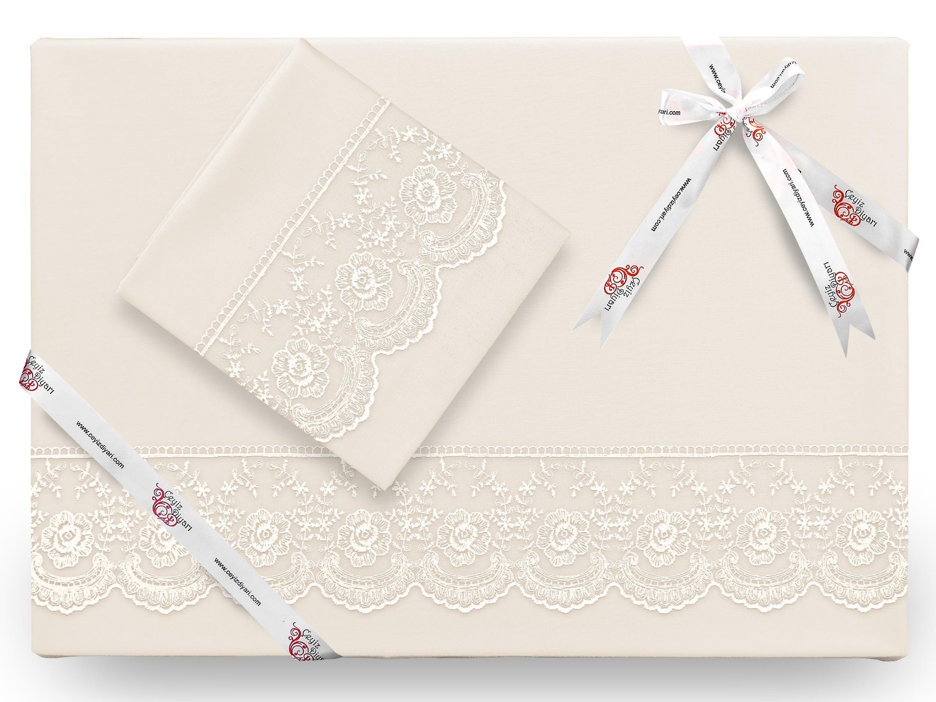 Fransız Dantelli Kure Çeyizlik Nevresim Takımı Krem