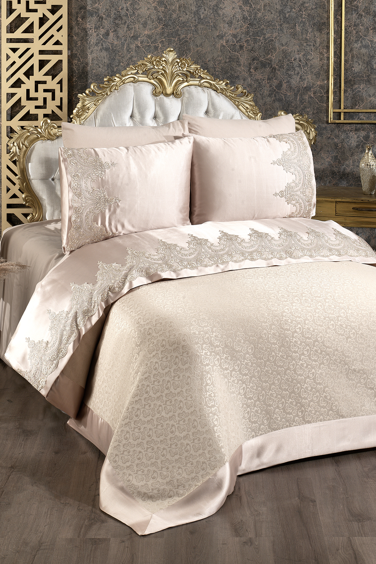 Çeyizdiyarı Fransız Güpürlü Diana Pike Takımı Bej