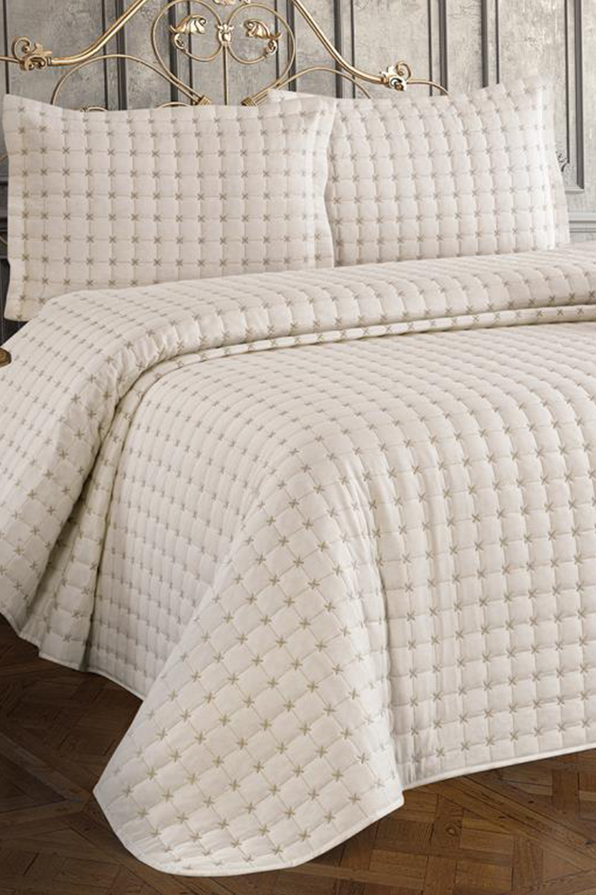 Yıldız Çift Kişilik Kapitoneli Yatak Örtüsü Krem