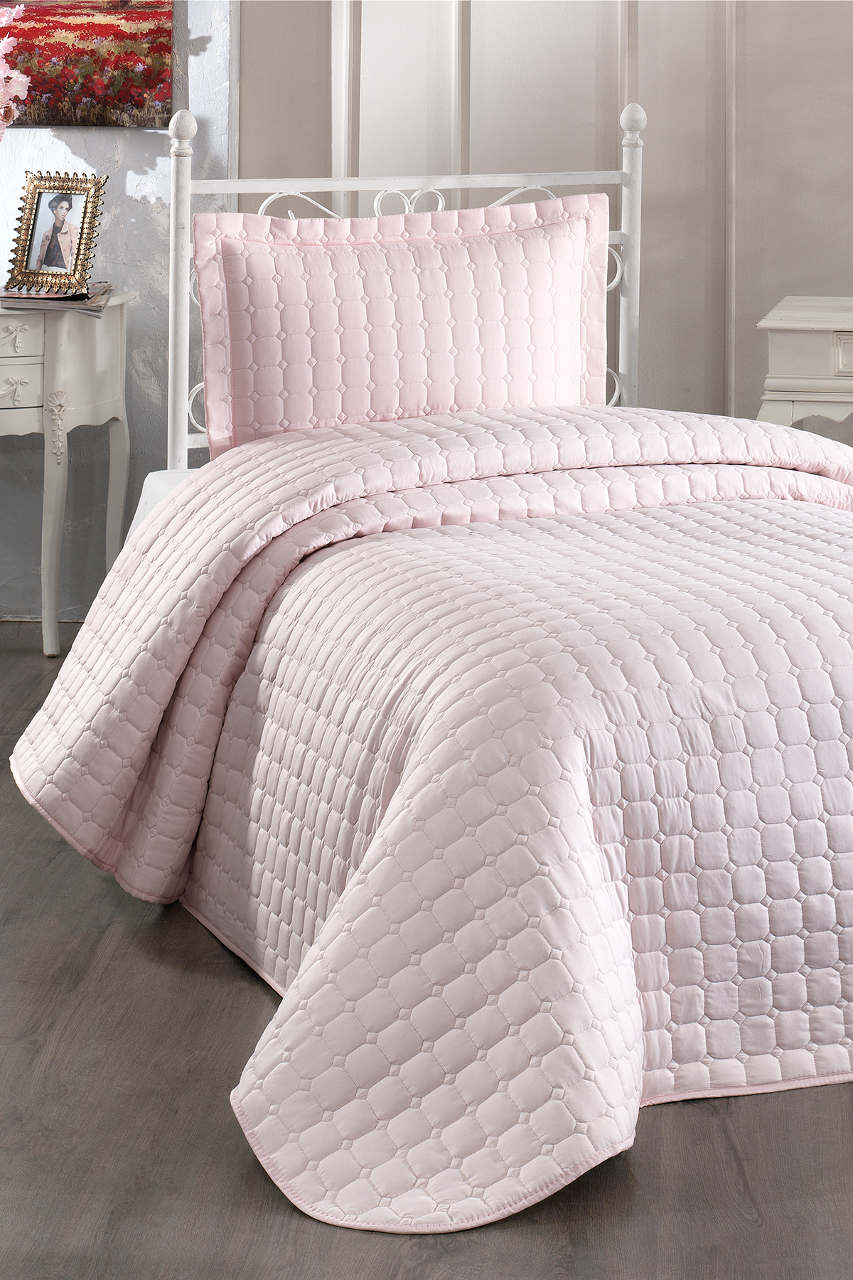 Estiva Tek Kişilik Yatak Örtüsü Pudra