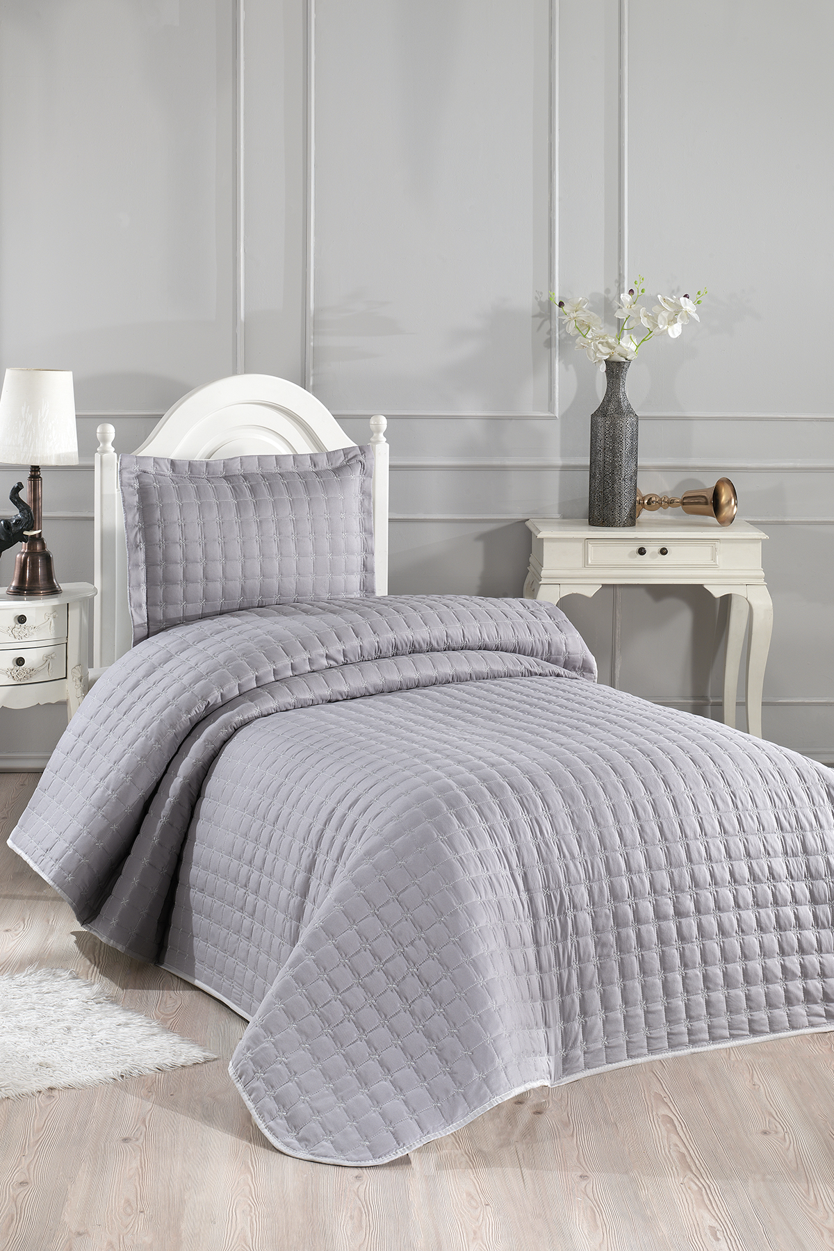 Yıldız Tek Kişilik Kapitoneli Yatak Örtüsü Gri