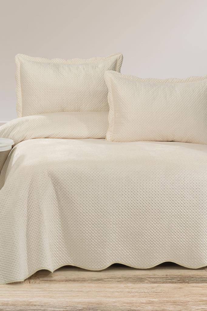 Askana Çift Kişilik Lüks Kadife Yatak Örtüsü Krem