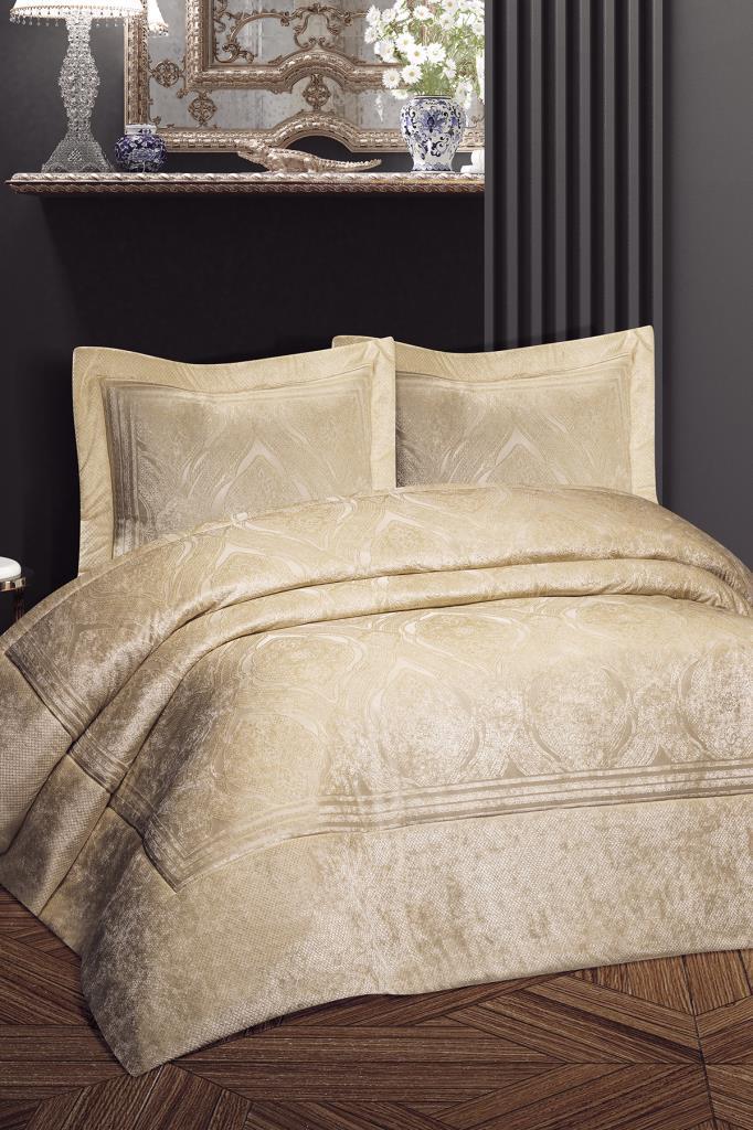 Parla Kadife Çift Kişilik Yatak Örtüsü Bej
