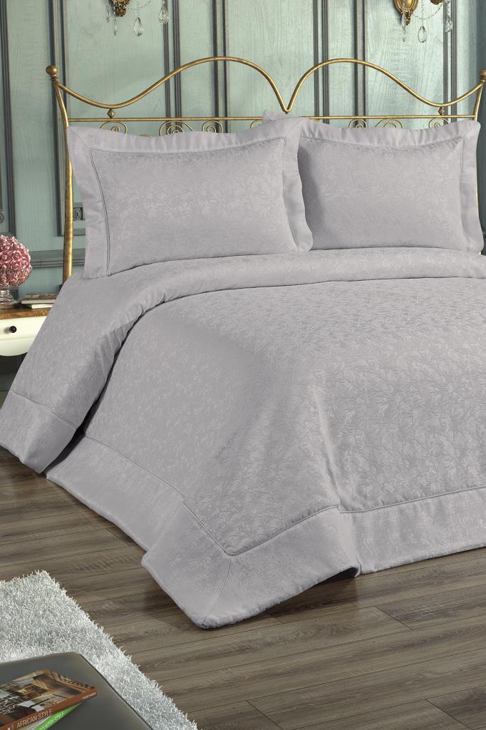 Buğlem Dolgulu Şönil Çift Kişilik Yatak Örtüsü Gri