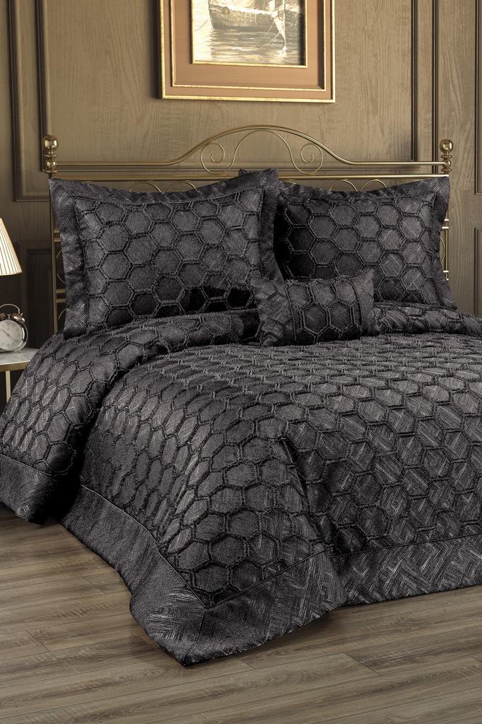 Deste Dolgulu Pamuklu Çift Kişilik Yatak Örtüsü Antrasit