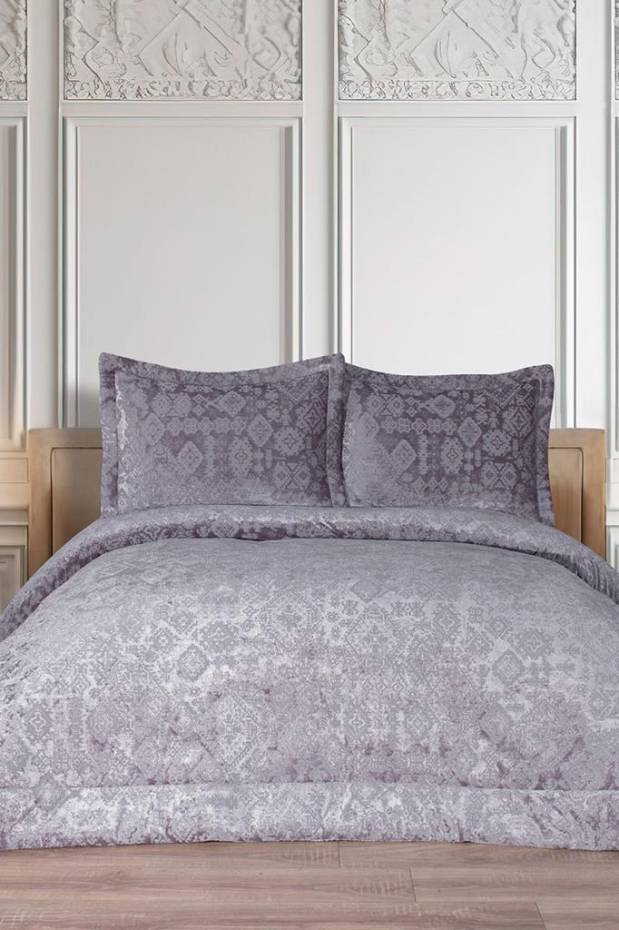 Emila Elyaf Dolgulu Çift Kişilik 250x255 Cm Yatak Örtüsü Gri