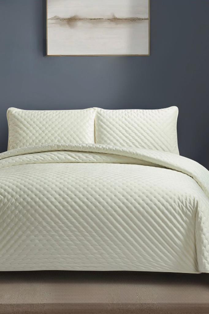 Bianca Çift Kişilik Lüks Kadife Yatak Örtüsü Krem
