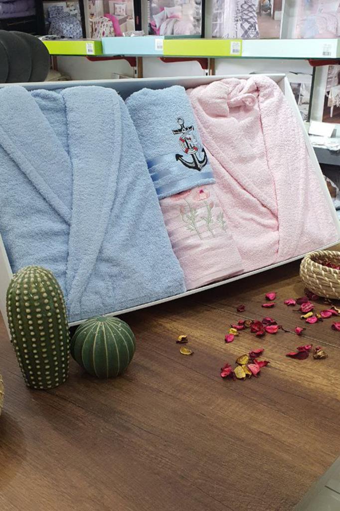 Çeyizlik Aile Bornoz Seti 4 Parça Pudra Mavi