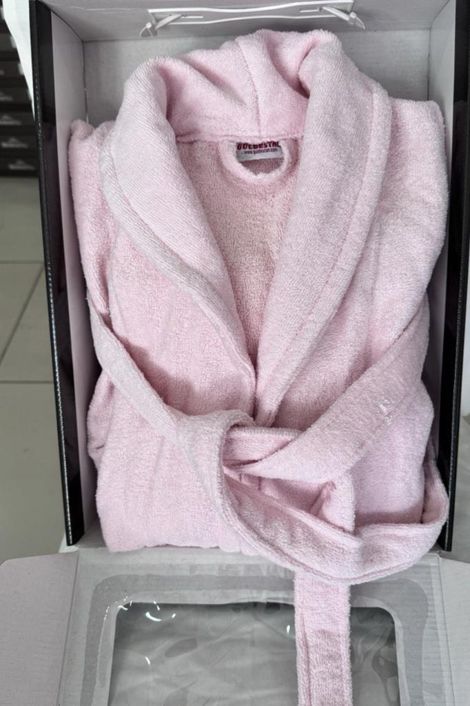 Pastel Kadife Tek Bornoz Pudra