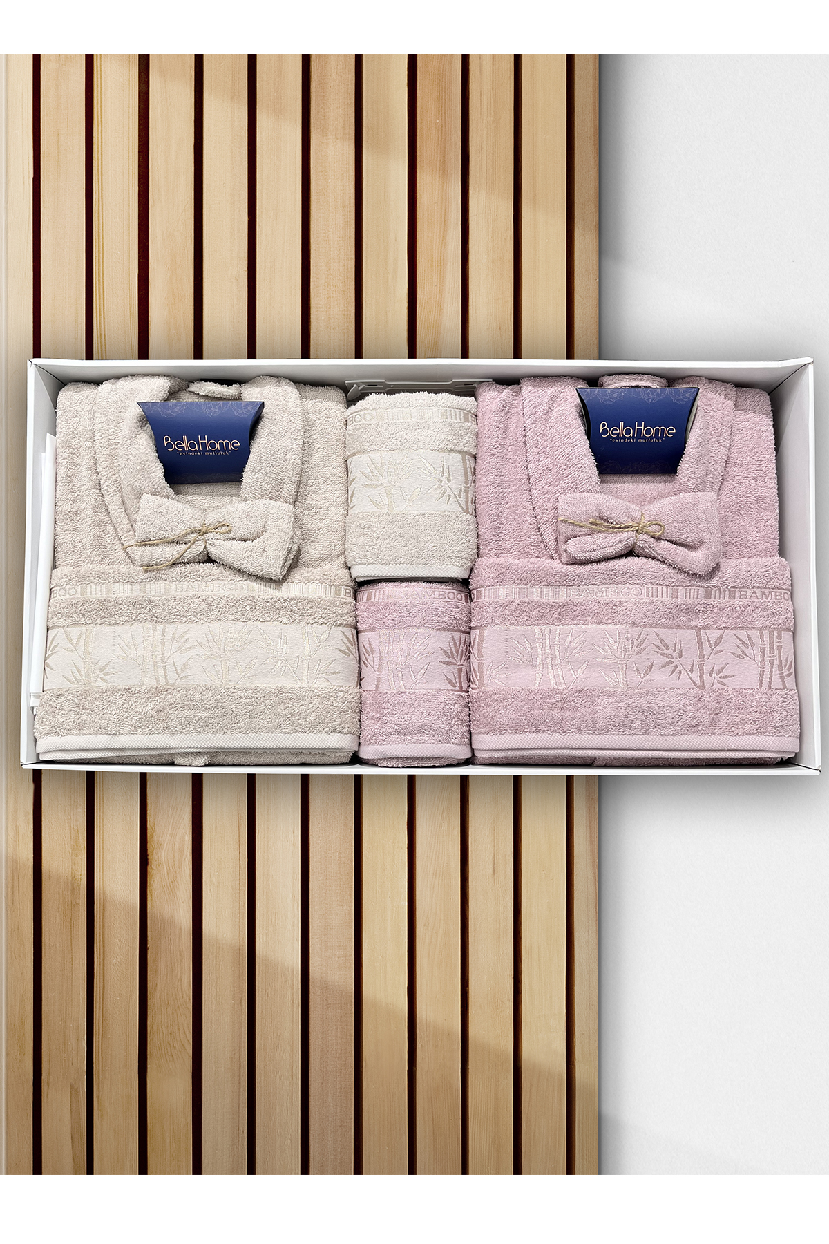 Elmas Bambu 10 Parça Aile Bornoz Takımı Bej Mürdüm