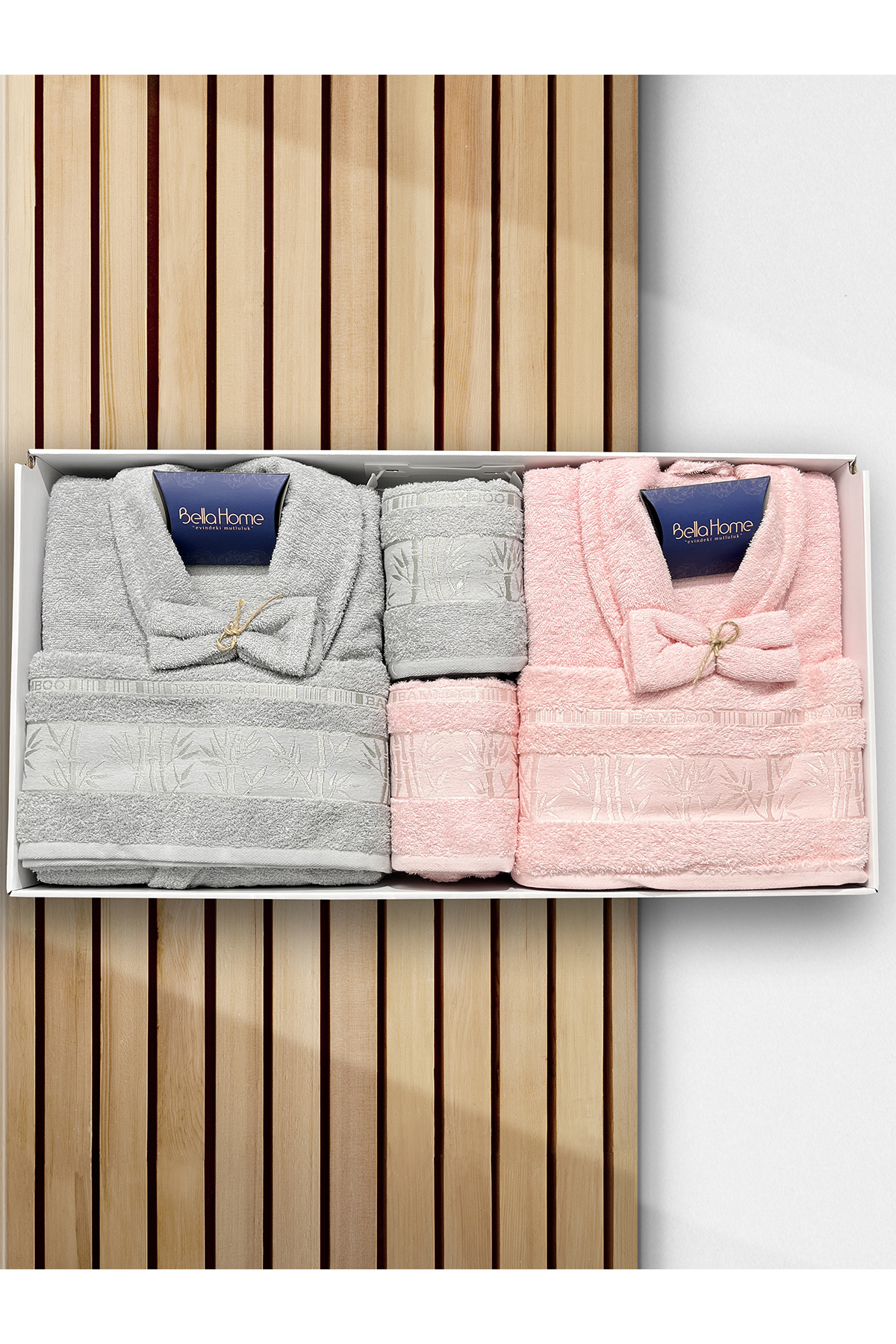 Elmas Bambu 10 Parça Aile Bornoz Takımı Gri Pudra