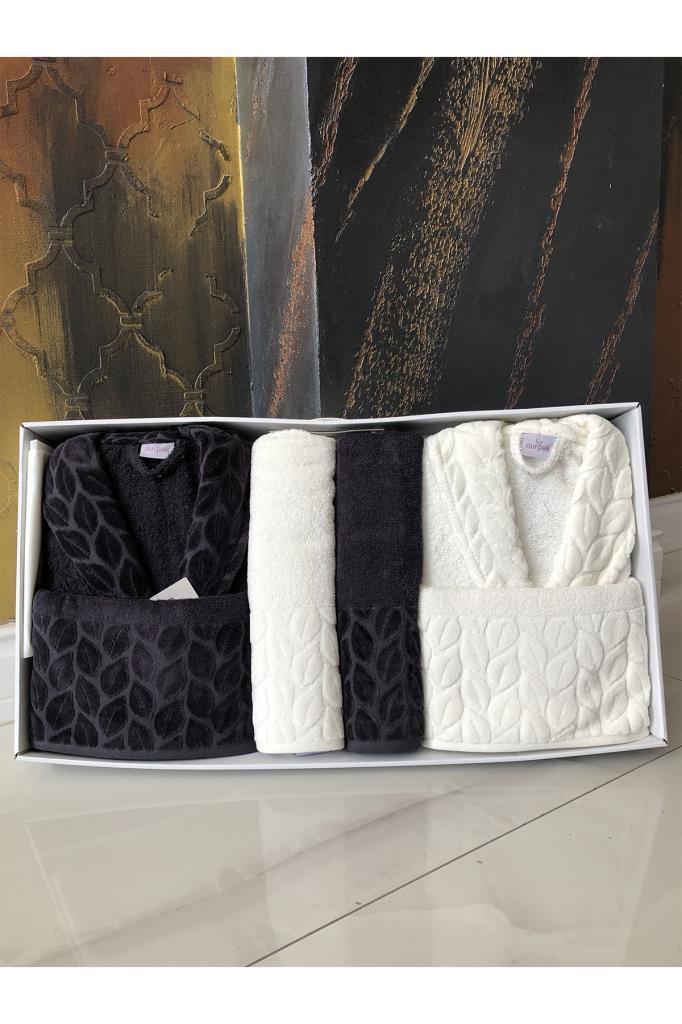 Hazal 8 Parça Aile Bornoz Takımı Krem Antrasit