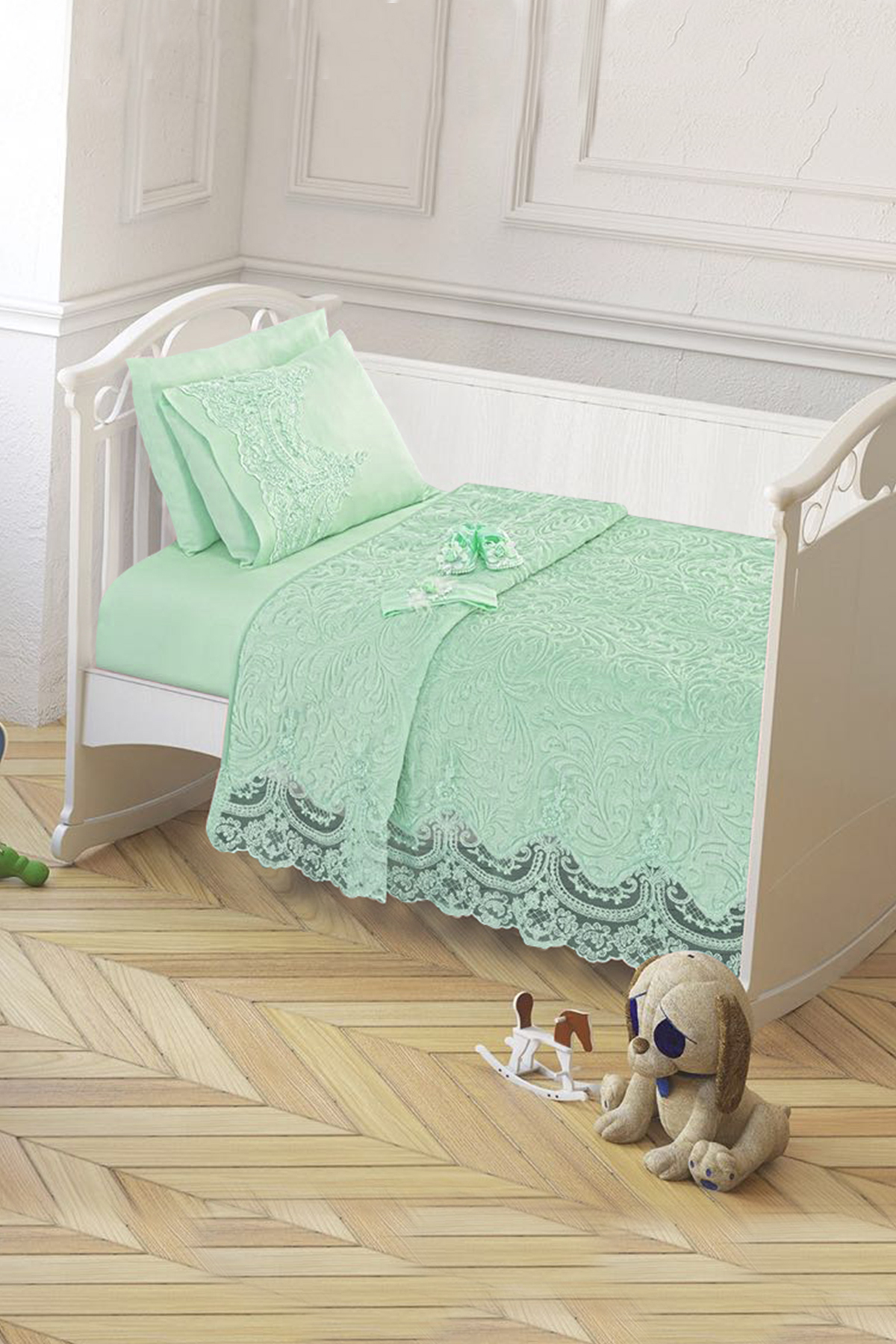 Fransız Güpürlü Bebek Battaniye Takımı Mint