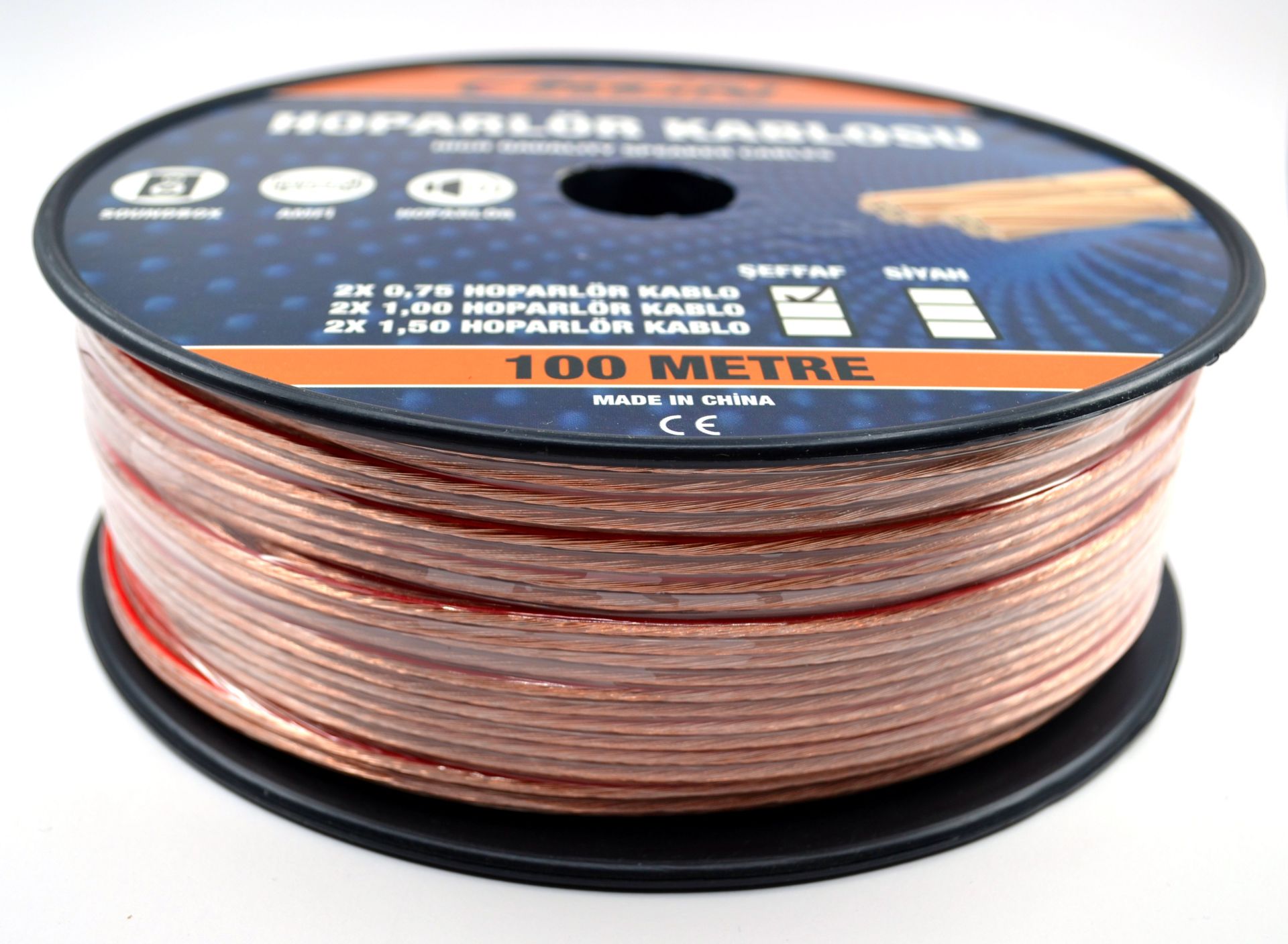 100 Metre 2X0,75mm² CCA Bitişik Hoparlör Kablosu Şeffaf