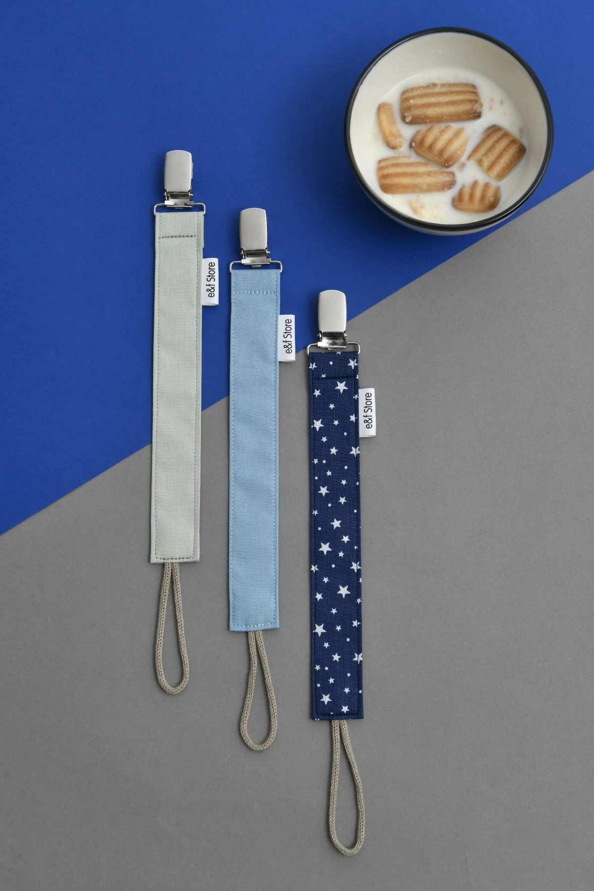 Yerli üretimdir ve El Yapımıdır. %100 Pamuk Poplin Kumaş, %100 Pamuk İp ve Nikel Kaplı Metal Kullanılmıştır. Oldukça Pratik Olan Emzik Askısını Tüm Kıyafetlere Kolayca Takabilirsiniz. Kopmaya Dayanıklıdır. Elde Yıkamaya Uygundur. Boyutları: 2,5 cm*27 cm 3 Adet Olarak Gönderilmektedir. Bebek Hediyesi Paketinin İçeriği:1 Adet Petrol Mavisi, 1 Adet Mint Yeşili, 1 Adet Yıldız Desenli Lacivert UYARI: Küçük Parçalar İçerdiği İçin Yetişkin Gözetiminde Kullanılmalıdır.