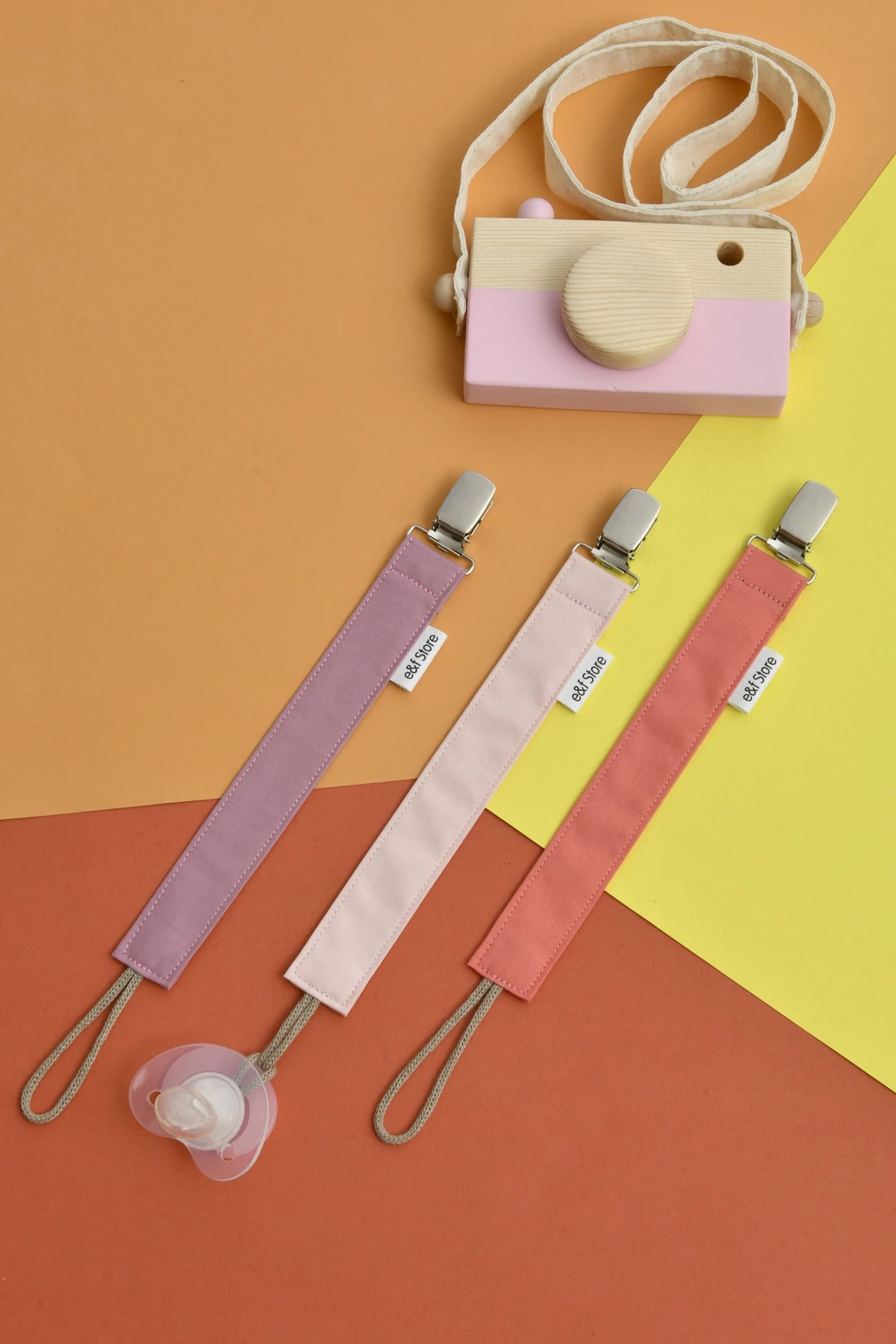 Yerli üretimdir ve El Yapımıdır. %100 Pamuk Poplin Kumaş, %100 Pamuk İp ve Nikel Kaplı Metal Kullanılmıştır. Oldukça Pratik Olan Emzik Askısını Tüm Kıyafetlere Kolayca Takabilirsiniz. Kopmaya Dayanıklıdır. Elde Yıkamaya Uygundur. Boyutları: 2,5 cm*27 cm 3 Adet Olarak Gönderilmektedir. Bebek Hediyesi Paketinin İçeriği:1 Adet Toz Pembe, 1 Adet Gül Kurusu, 1 Adet Nar Çiçeği Pembesi UYARI: Küçük Parçalar İçerdiği İçin Yetişkin Gözetiminde Kullanılmalıdır.