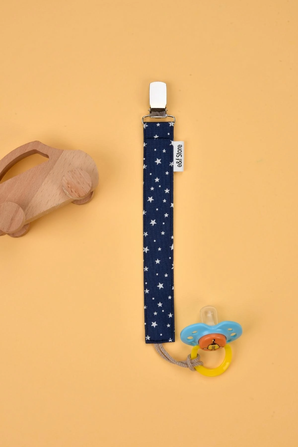 Pamuk Kumaşlı Emzik Zinciri – Yıldız Desenli Lacivert