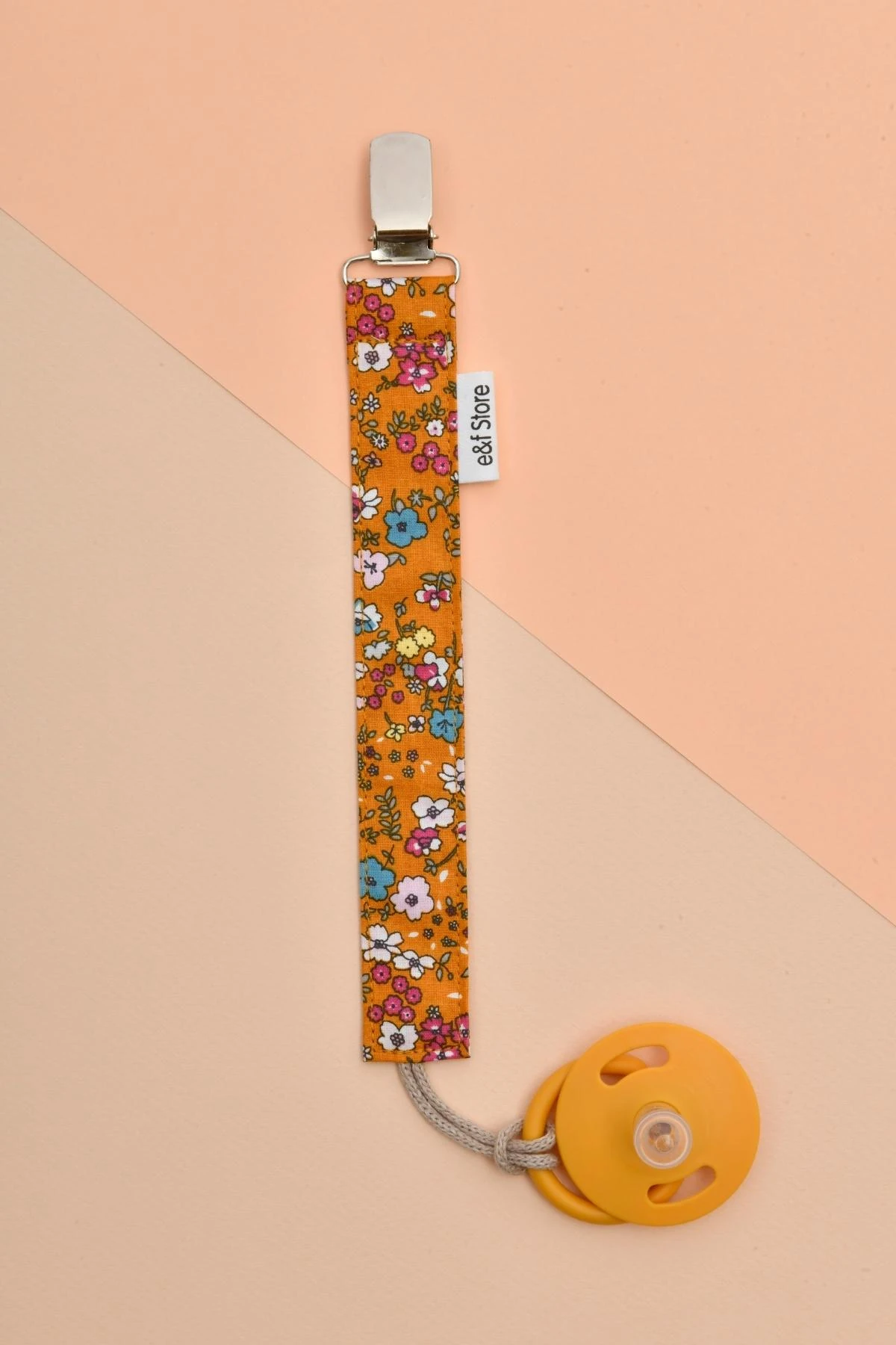 Pamuk Kumaşlı Emzik Zinciri – Balkabağı Çiçekli
