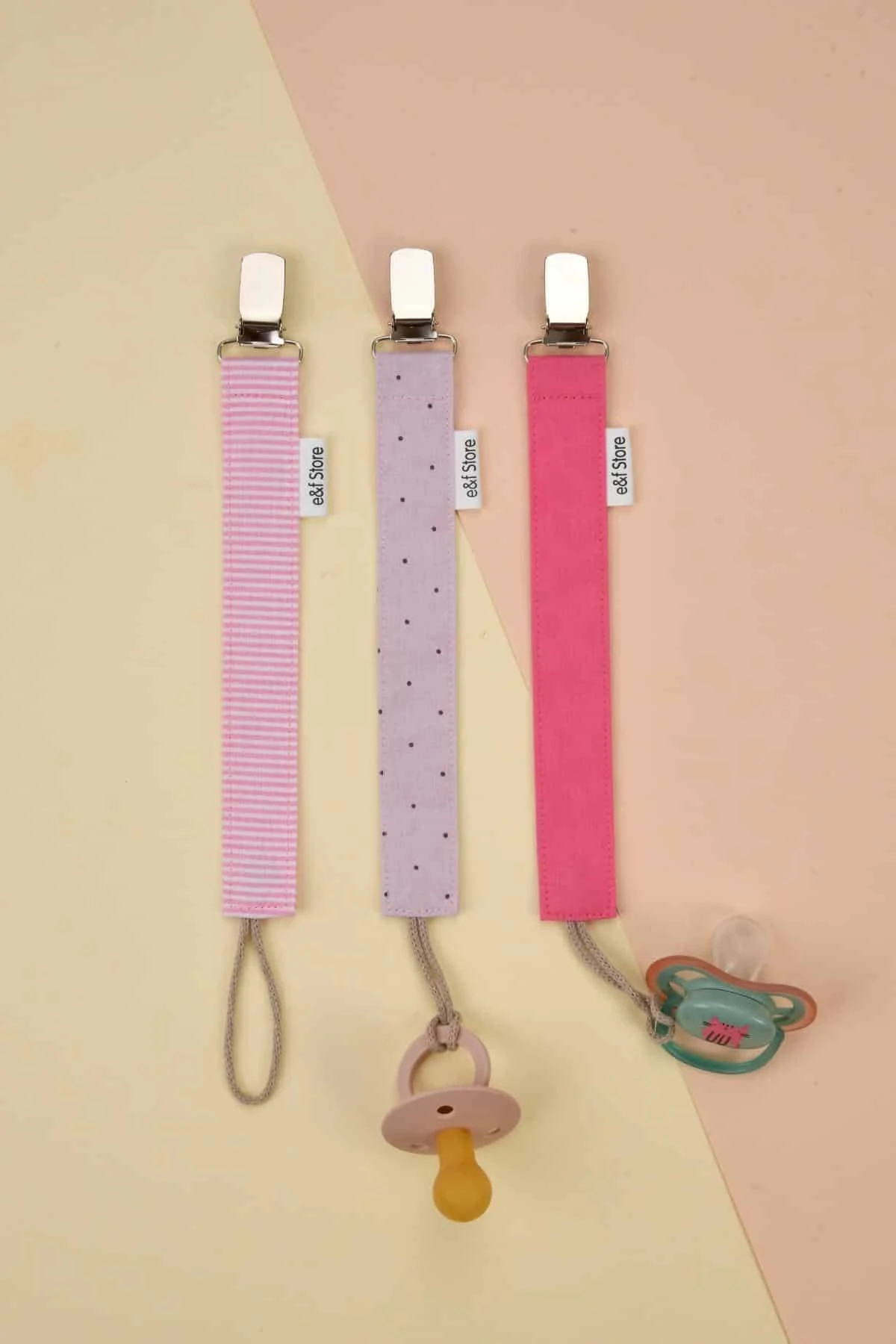 3'lü Emzik Askısı Seti - Pembe Çizgili - Lila Puantiyeli - Fuşya