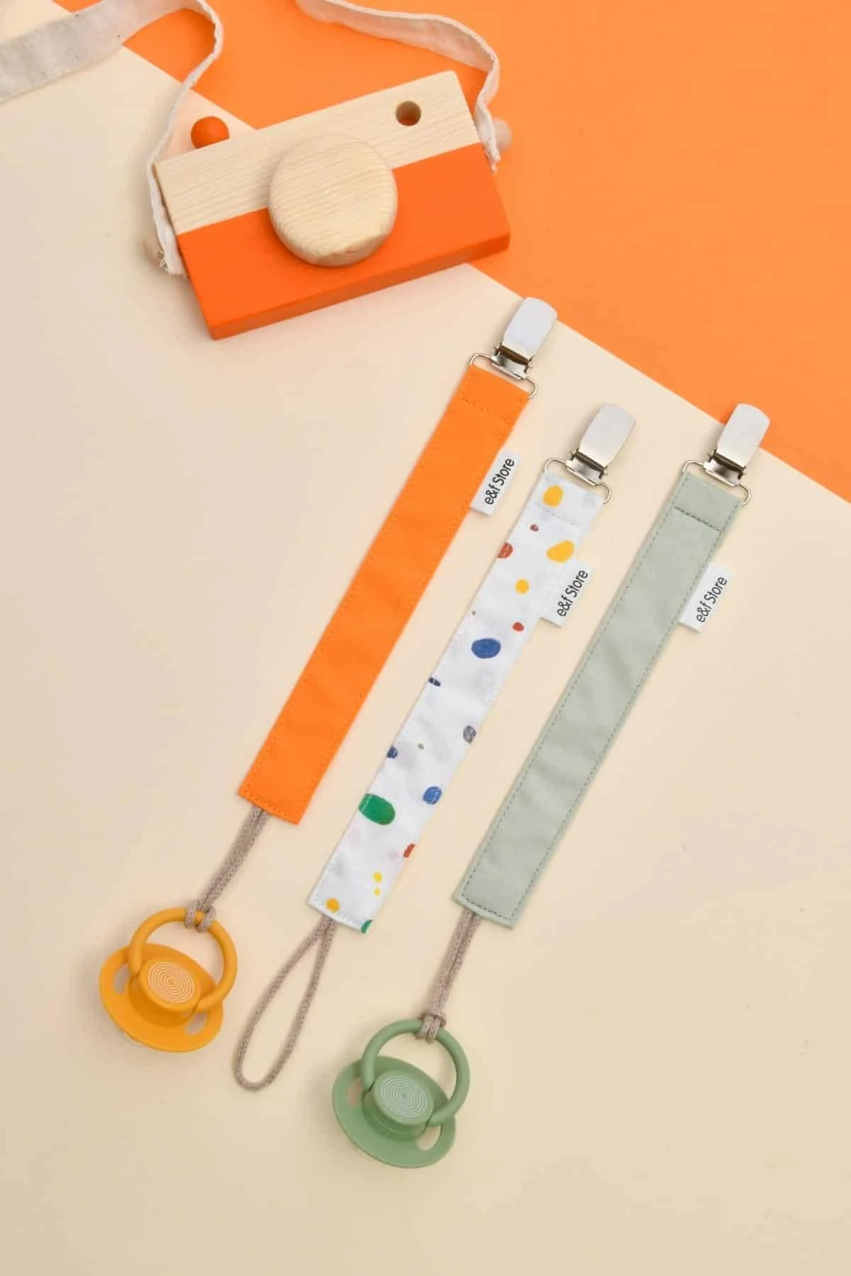 Yerli üretimdir ve El Yapımıdır. %100 Pamuk Poplin Kumaş, %100 Pamuk İp ve Nikel Kaplı Metal Kullanılmıştır. Oldukça Pratik Olan Emzik Askısını Tüm Kıyafetlere Kolayca Takabilirsiniz. Kopmaya Dayanıklıdır. Elde Yıkamaya Uygundur. Boyutları: 2,5 cm*27 cm 3 Adet Olarak Gönderilmektedir. Bebek Hediyesi Paketinin İçeriği:1 Adet Turuncu, 1 Adet Sulu boya Desenli, 1 Adet Mint Yeşili UYARI: Küçük Parçalar İçerdiği İçin Yetişkin Gözetiminde Kullanılmalıdır.