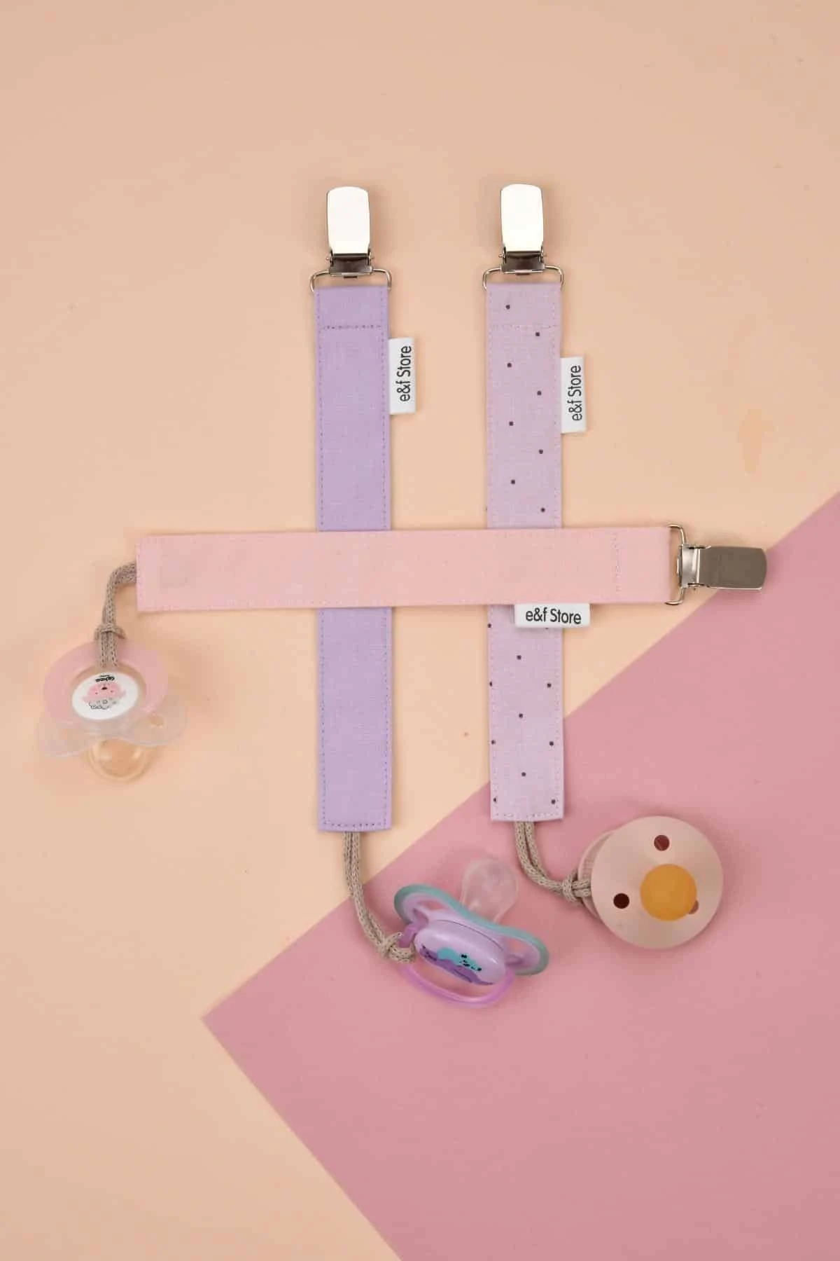 İkinci Şans - 3'lü Emzik Askısı Seti - Lila - Toz Pembe - Puantiyeli Lila