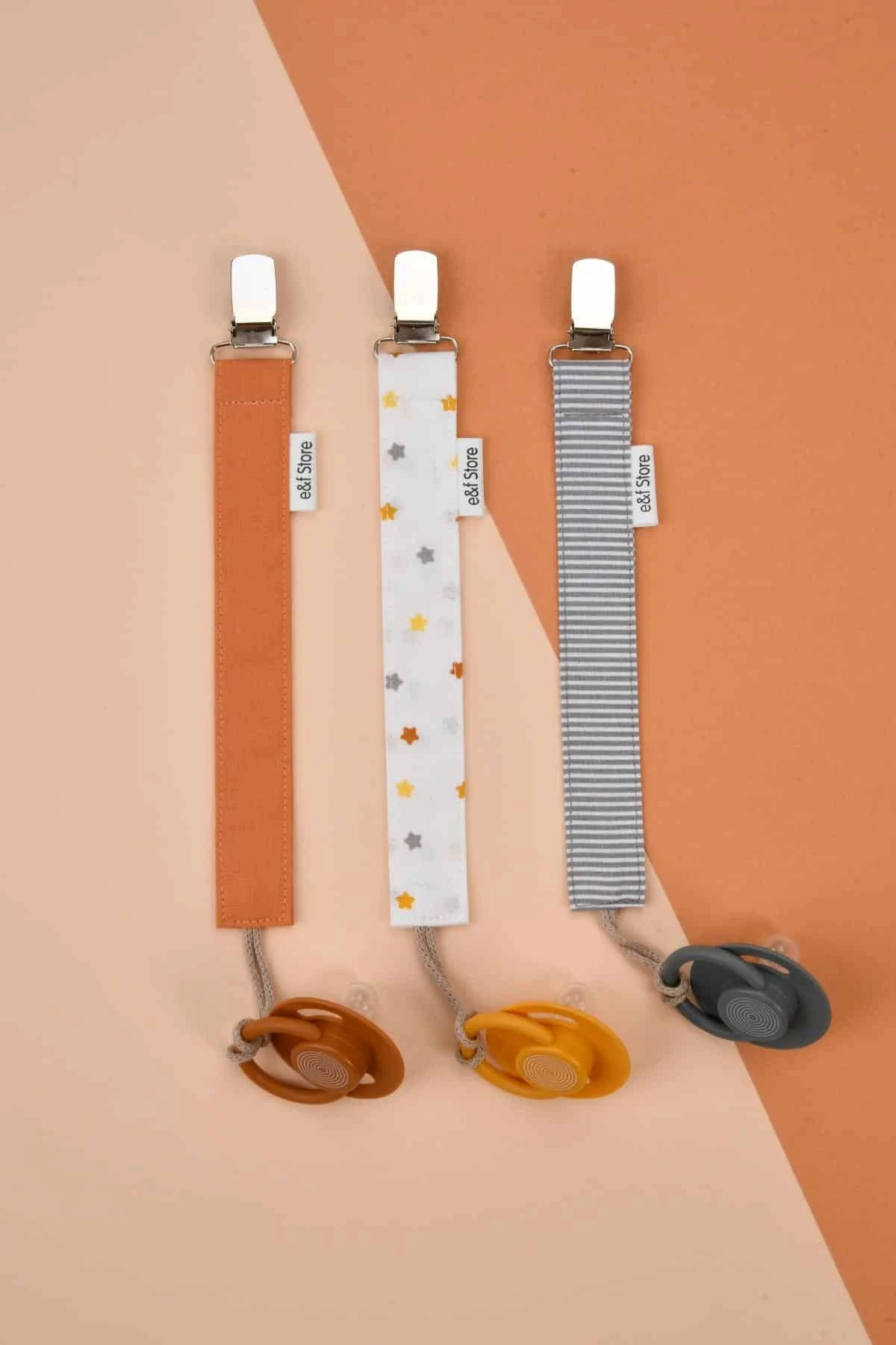 İkinci Şans - 3'lü Emzik Askısı Seti - Somon - Yıldız - Gri Beyaz Çizgili