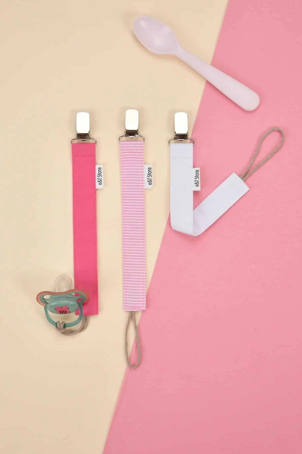 İkinci Şans - 3'lü Emzik Askısı Seti - Fuşya - Çizgili - Beyaz