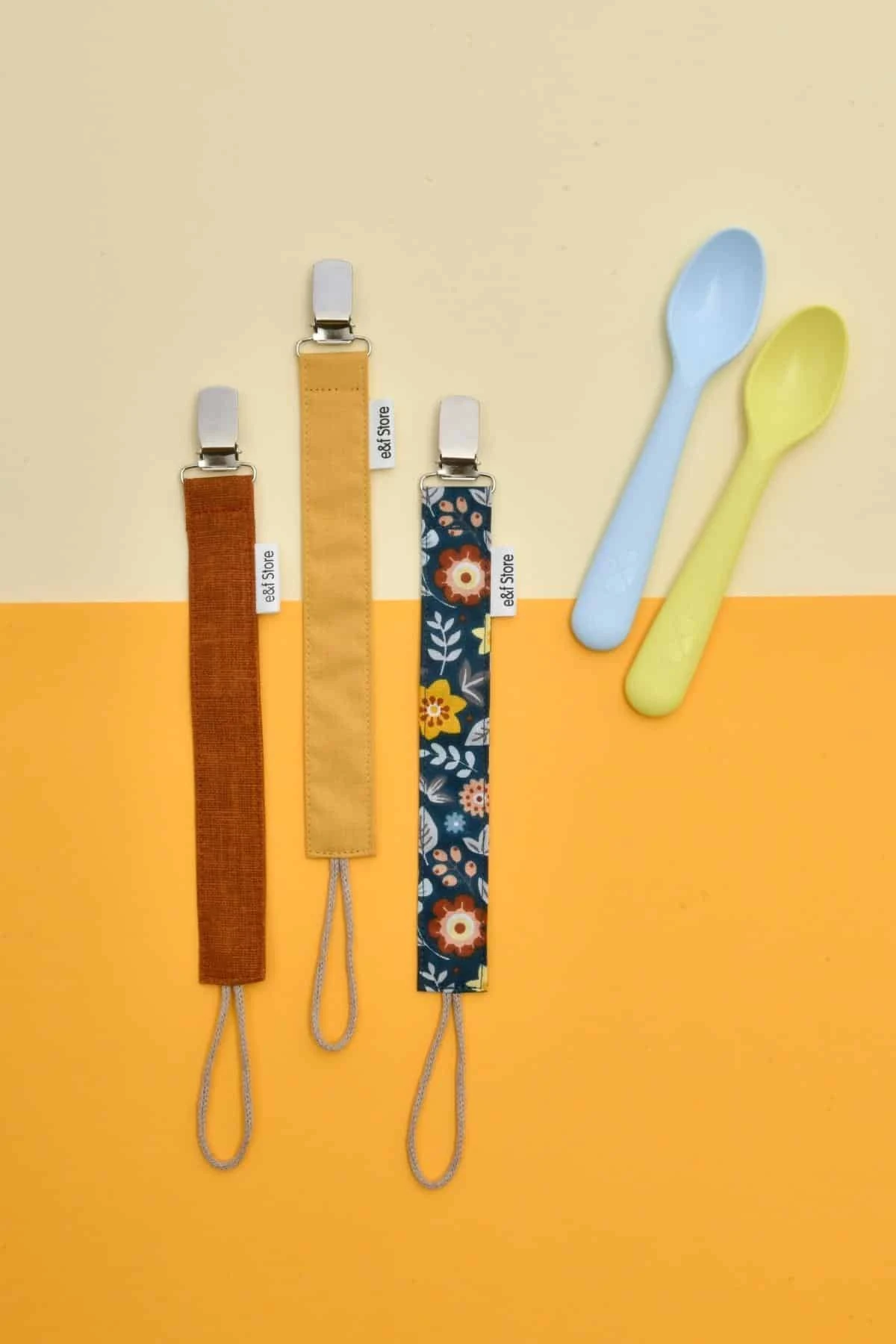 İkinci Şans - 3'lü Emzik Askısı Seti - Kiremit Sarı Mavi Çiçekli