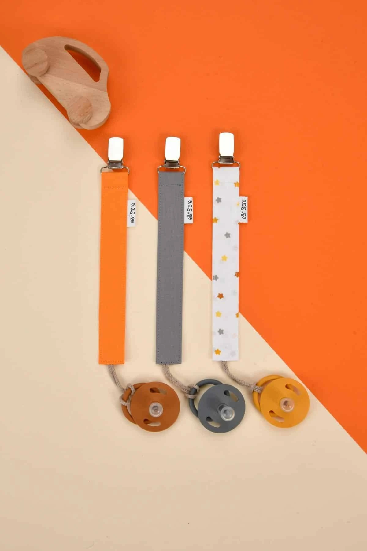 İkinci Şans - 3'lü Emzik Askısı Seti - Turuncu - Gri - Yıldız