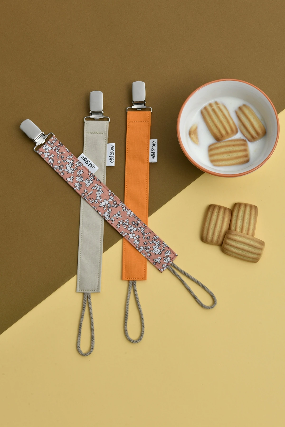 İkinci Şans - 3'lü Emzik Askısı Seti - Turuncu - Bej - Çiçekli