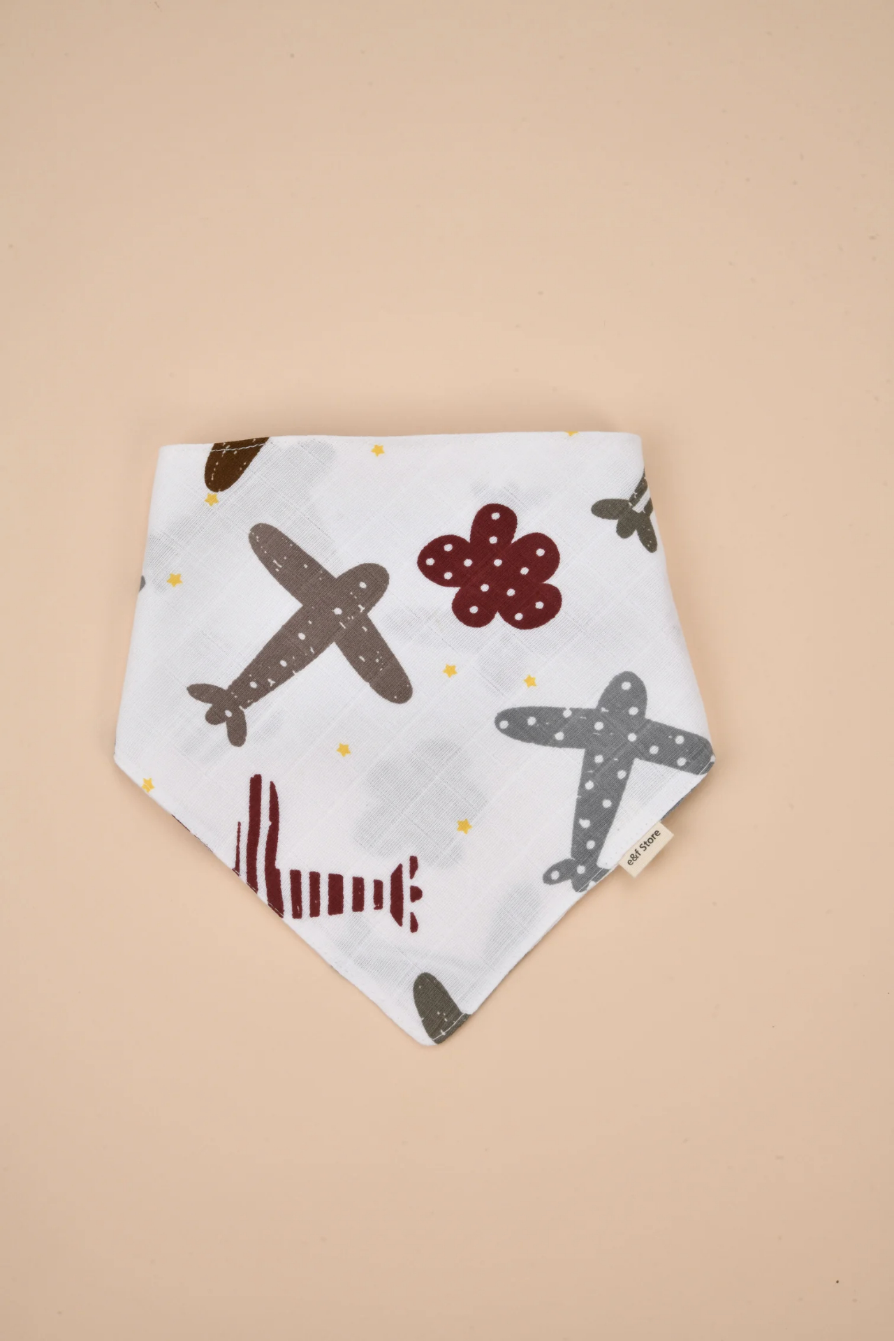İkinci Şans - Organik Sertifikalı Çift Katlı Müslin Kumaş - İki Çıtçıtlı Bebek Salya Önlük / Fular - Uçak Desenli