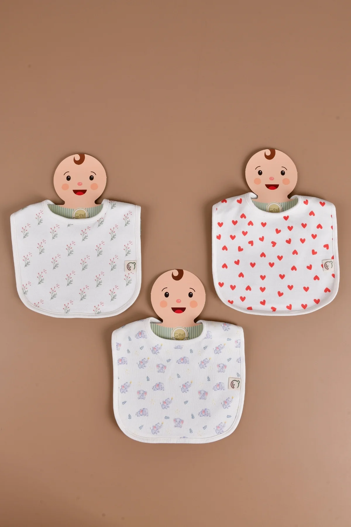 Sıvı Geçirmez Bebek Mama Önlüğü Bebek bakımında rahatlık ve güvenliği bir arada sunan sıvı geçirmez mama önlüğümüz, ebeveynlerin ve sevdiklerinin vazgeçilmez tercihi olacak! Önlüğümüzün ön yüzü, yumuşak dokusuyla bebeklerin hassas cildine uygun Oeko-Tex sertifikalı pamuk kumaştan üretilmiştir. Önlüğümüzün arka yüzü ise sıvı geçirmez alez kumaştır ve bebeklerin salyasını , üzerine dökülen sıvıların arka tarafa geçmesini engeller ve böylece giysiler kuru ve temiz kalır. Kız bebek sıvı geçirmez mama önlüğü seti; kalp, sevimli filve buket çiçek desenlerinden oluşuyor. 3 adetten oluşan sıvı geçirmez mama önlüklerimizi birlikte keşfedelim. Neden Bu Ürünü Tercih Etmelisiniz? Özgün Tasarımlar: Hiçbir yerde bulamayacağınız, tamamen bize ait benzersiz desenlerle tasarlanmıştır. Ayarlanabilir Çift Çıt Çıt: Ensedeki ayarlanabilir çift çıt çıt sayesinde 0-30 ay arası bebekler için idealdir. Bebeğiniz büyüdükçe bile rahatça kullanabilirsiniz. Doğal ve Güvenli Malzemeler: Ürünlerimiz doğal pamuklu ve sertifikalı kumaşlarla üretilmiştir, bu sayede bebeğinizin sağlığı bizim için ön plandadır. Sıvı Geçirmez: En büyük özelliğimiz olan sıvı geçirmezlik ile artık dökülen sütler, mama kalıntıları ve salyalar için endişelenmenize gerek yok! Anneler ve bebekler için ideal olan bu ürün, aynı zamanda büyükanneler ve büyükbabalar için de mükemmel bir hediye seçeneği! Sevdiklerinize kullanışlı ve kaliteli bir hediye sunmanın en güzel yolu. Bu harika bebek mama önlüğünü hemen sipariş verin ve bebek bakımını daha keyifli hale getirin!