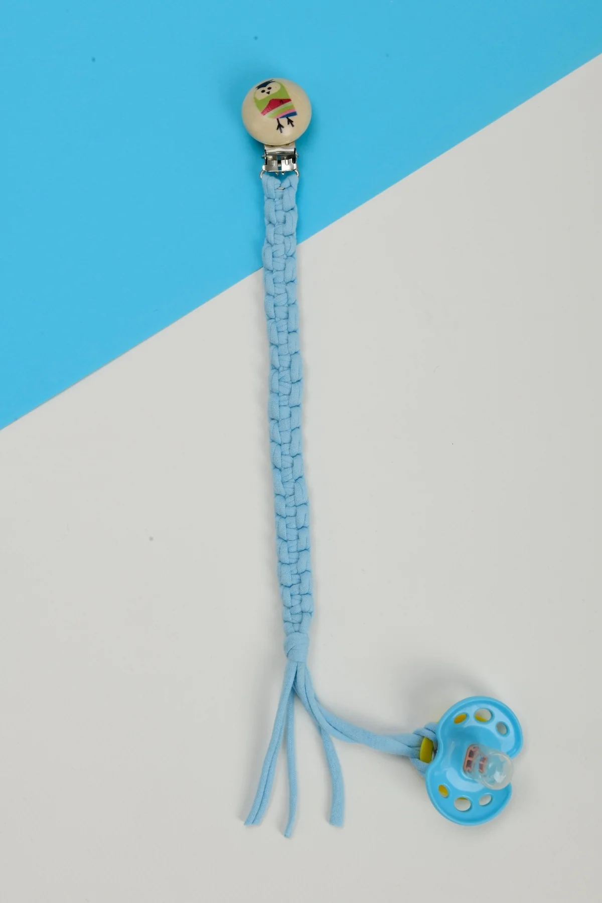 El Örmesi Doğal Ahşap Emzik Askısı - Baykuş - Mavi
