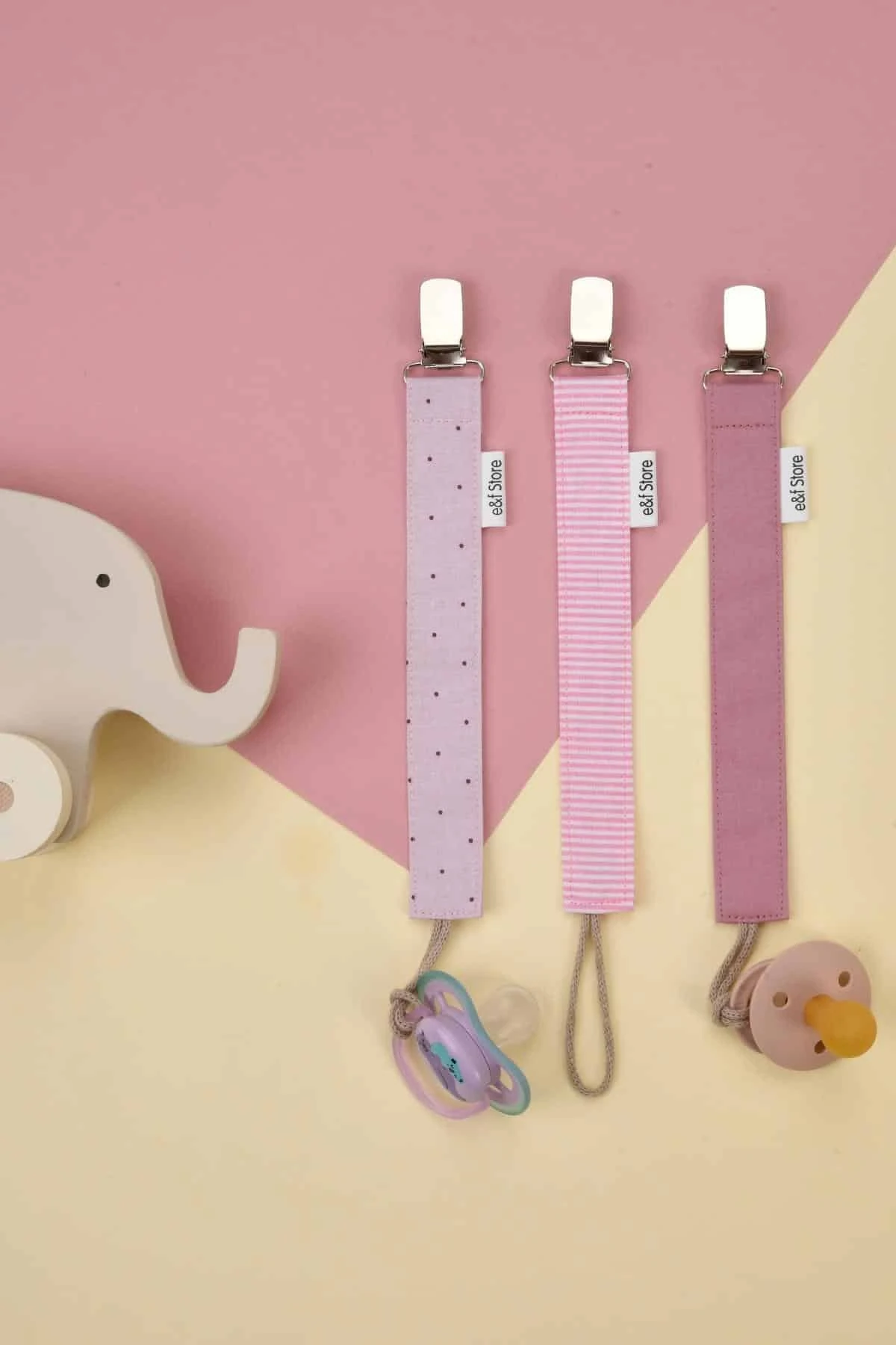 Yerli üretimdir ve El Yapımıdır. %100 Pamuk Poplin Kumaş, %100 Pamuk İp ve Nikel Kaplı Metal Kullanılmıştır. Oldukça Pratik Olan Emzik Askısını Tüm Kıyafetlere Kolayca Takabilirsiniz. Kopmaya Dayanıklıdır. Elde Yıkamaya Uygundur. Boyutları: 2,5 cm*27 cm 3 Adet Olarak Gönderilmektedir. Bebek Hediyesi Paketinin İçeriği:1 Adet Puantiyeli Lila, 1 Adet Pembe Beyaz Çizgili, 1 Adet Gül Kurusu UYARI: Küçük Parçalar İçerdiği İçin Yetişkin Gözetiminde Kullanılmalıdır.