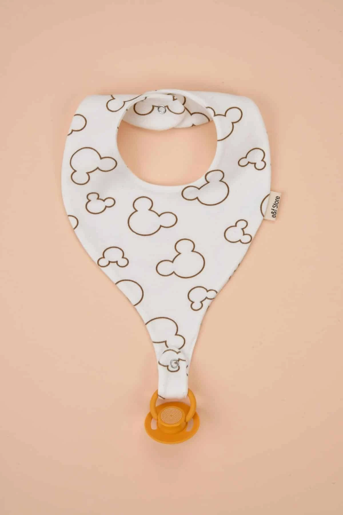 İkinci Şans - Emzik Tutucu Mama Önlüğü - Sevimli Fare Desenli %100 Pamuk Kumaş
