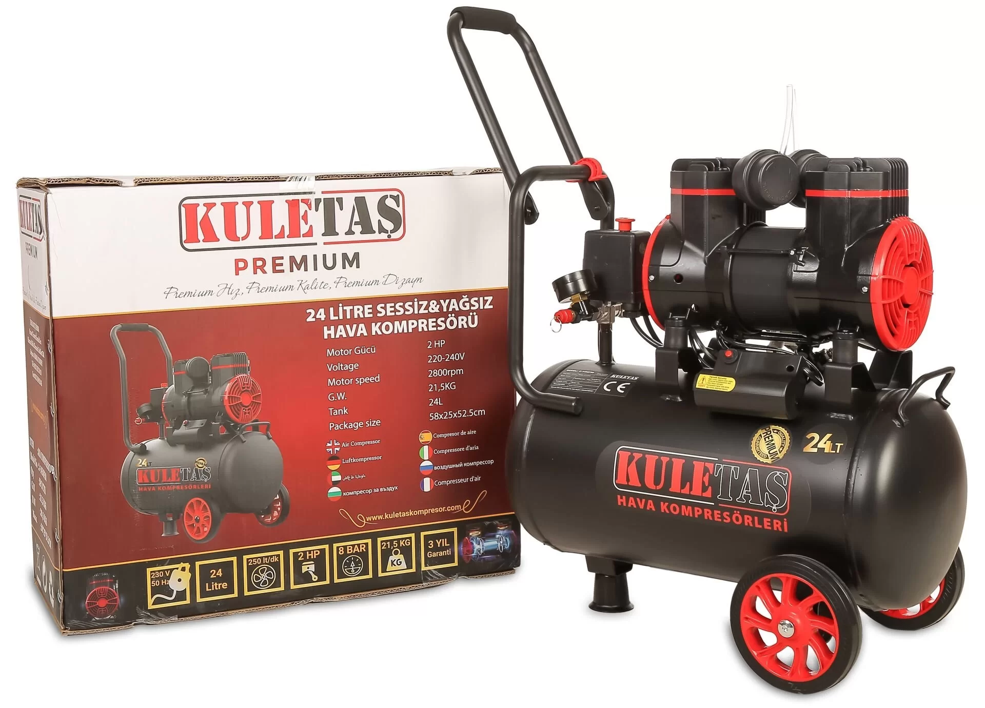 Kuletaş Premium 24 Litre Sessiz Yağsız Hava Kompresörü 2 Hp (İtalyan Tasarım)