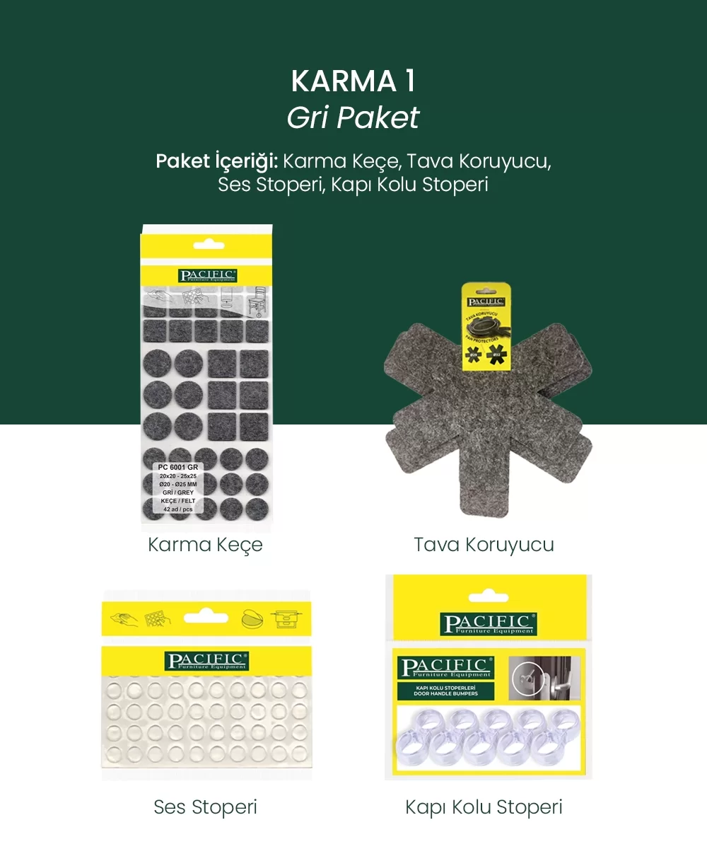 Yapışkanlı Karma Mobilya Keçesi + Ses Stoperi + Kapı Stoperi ve Çizilmez Tava Koruyucu Keçe Seti