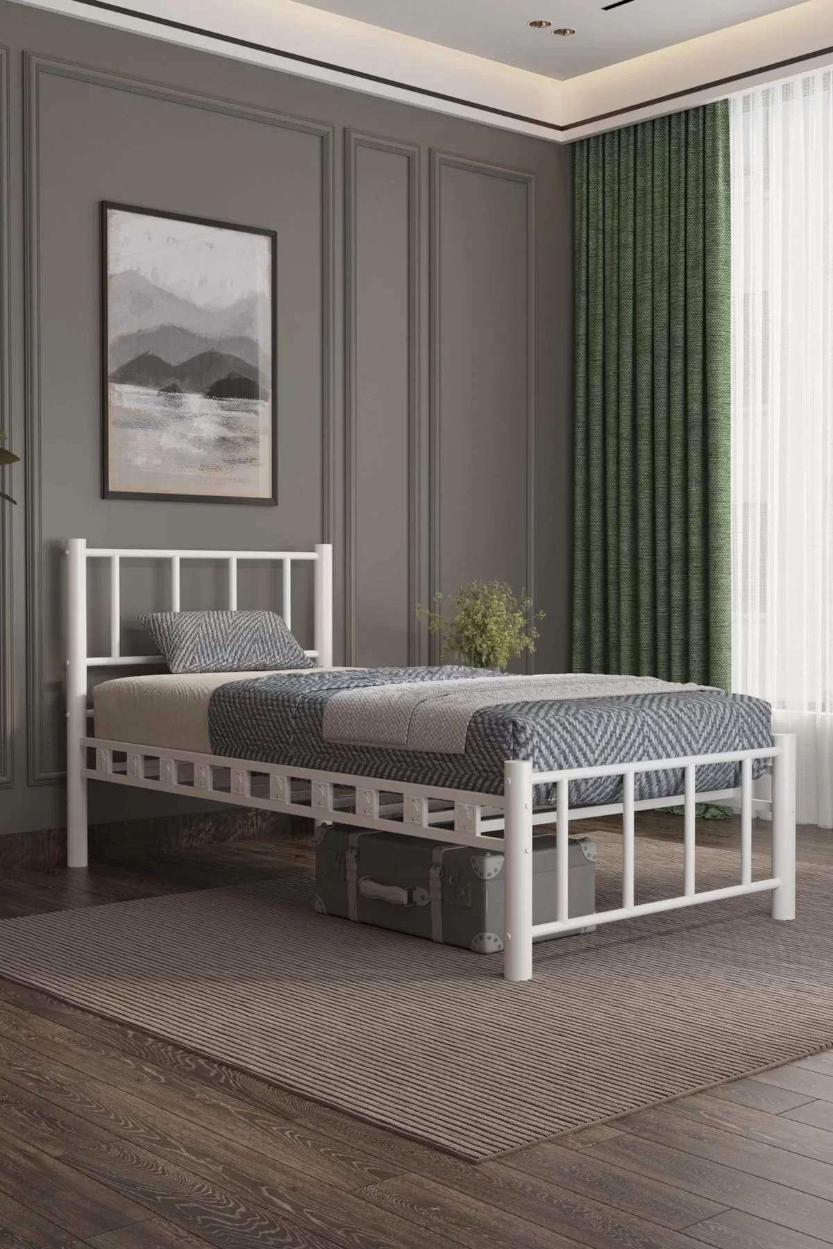 Zambak Tek Kişilik Ferforje Metal Karyola Beyaz