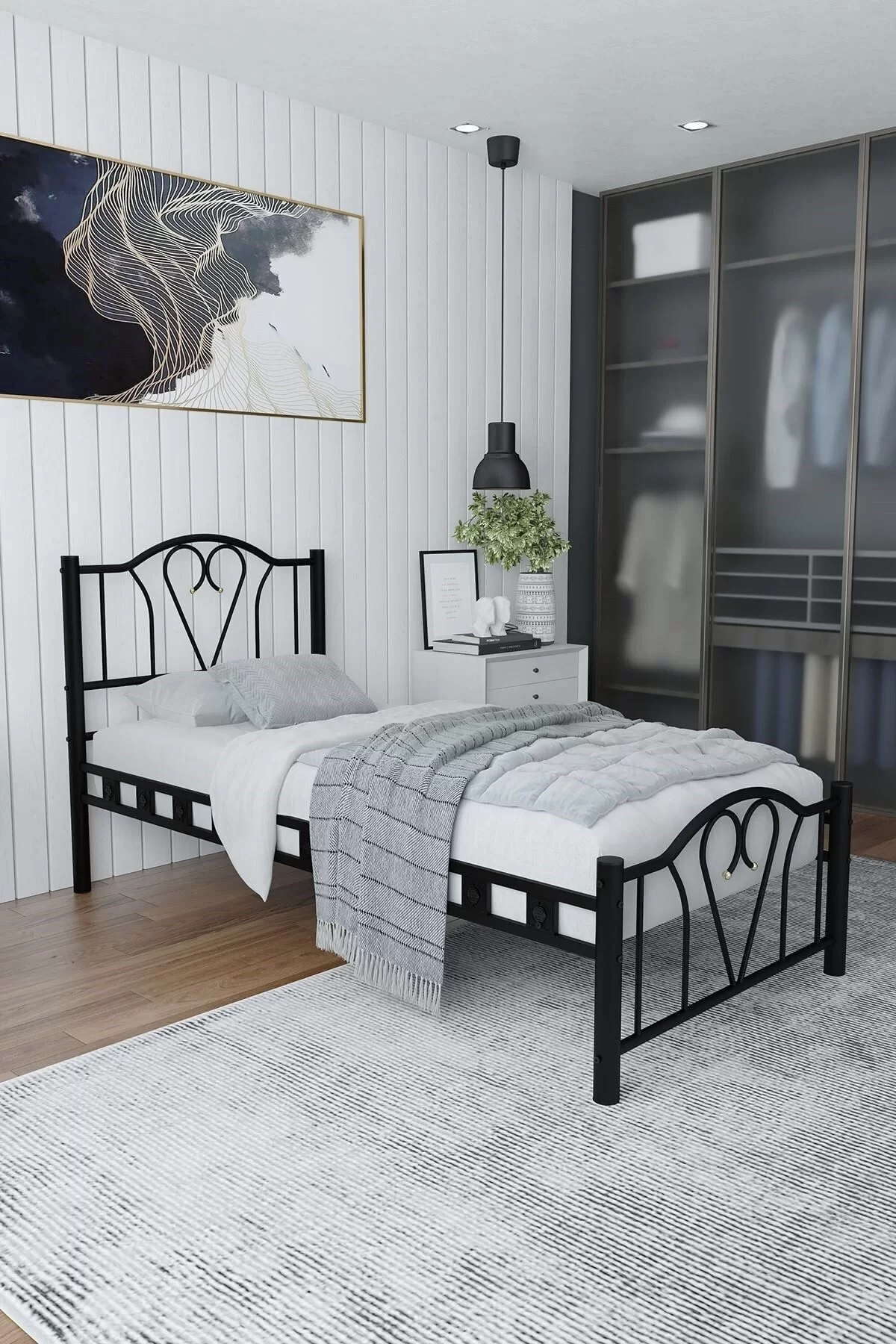 Orkide Tek Kişilik Ferforje Metal Karyola Siyah